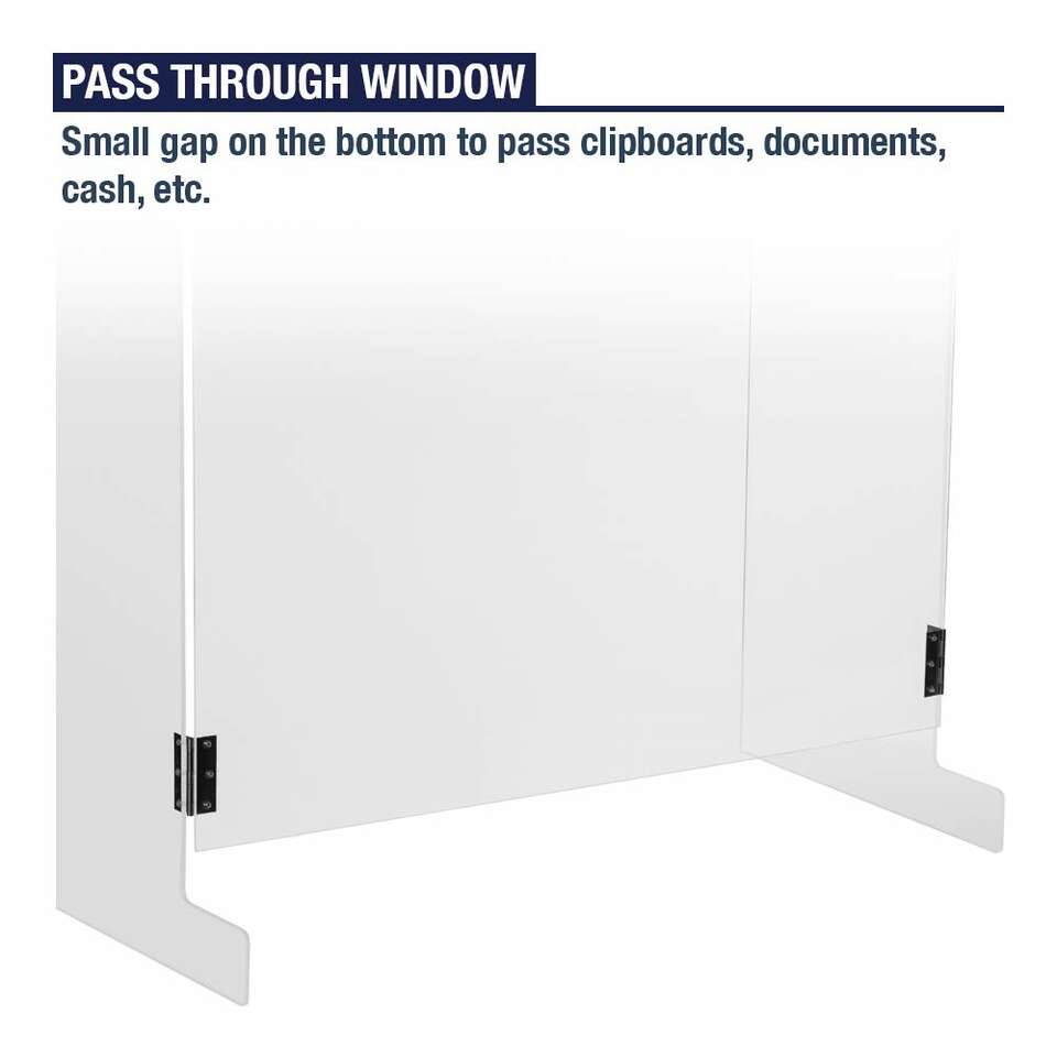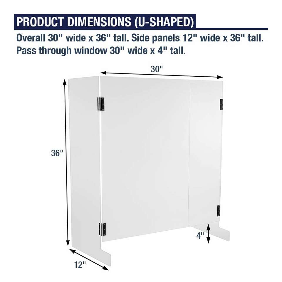 Sneeze Guard Shield for Counter - 30"W x 36"H x 12"D, U Shaped Cough and Sneeze Guard, Pass Through Opening, 5 mm Thick Clear Acrylic, Plastic Shield Protection on Front and Sides - Sneeze Guard Shield - Protect yourself, employees, and customers from exposure to coughs, sneezes, saliva, and breath. Crystal clear acrylic allows you to have full visibility while communicating with your customers and colleagues.