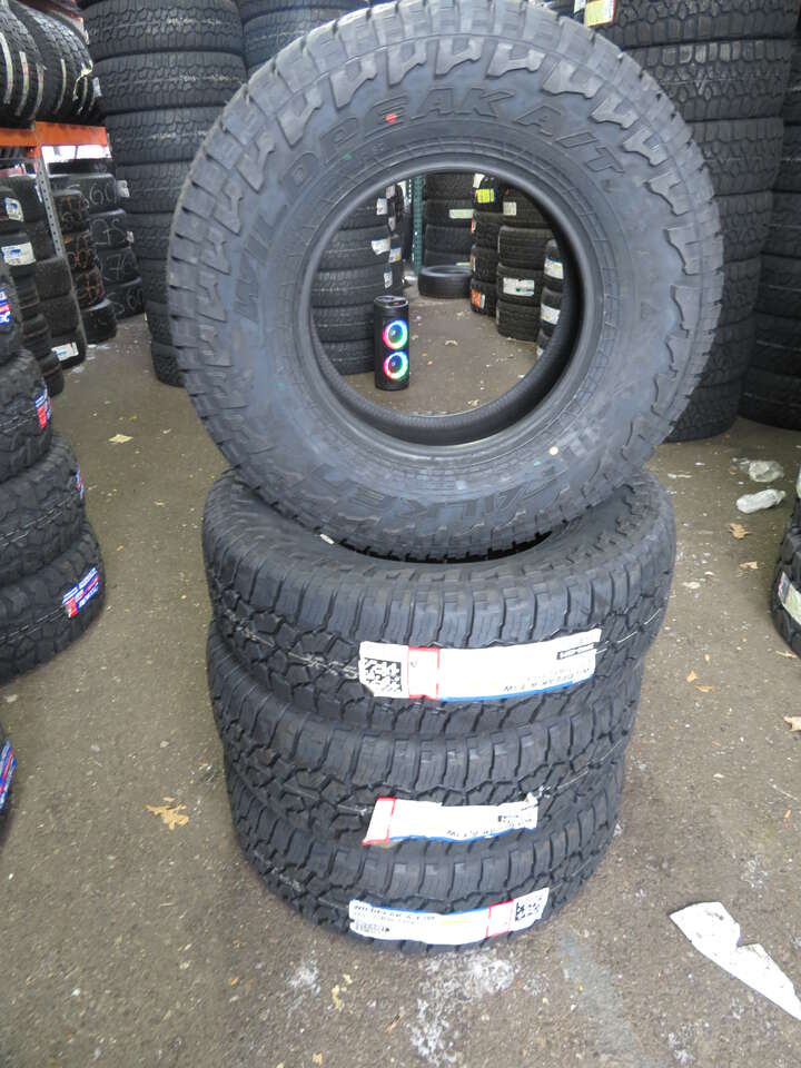 NEW SET OF P 225/65R17 FALKEN WILD PEAK A/T3 AWESOME DEAL. FOR $920 INCLUDES YOUR TAX, WE ALSO OFFER INSTALLATION FOR $10 PER TIRE. HABLAMOS ESPANOL.