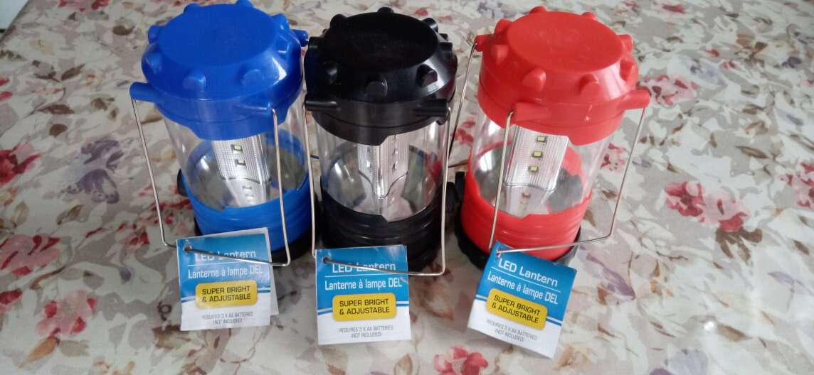 These take three AA batteries, not included. I have black and blue left $1 each. Down to two black ones left.