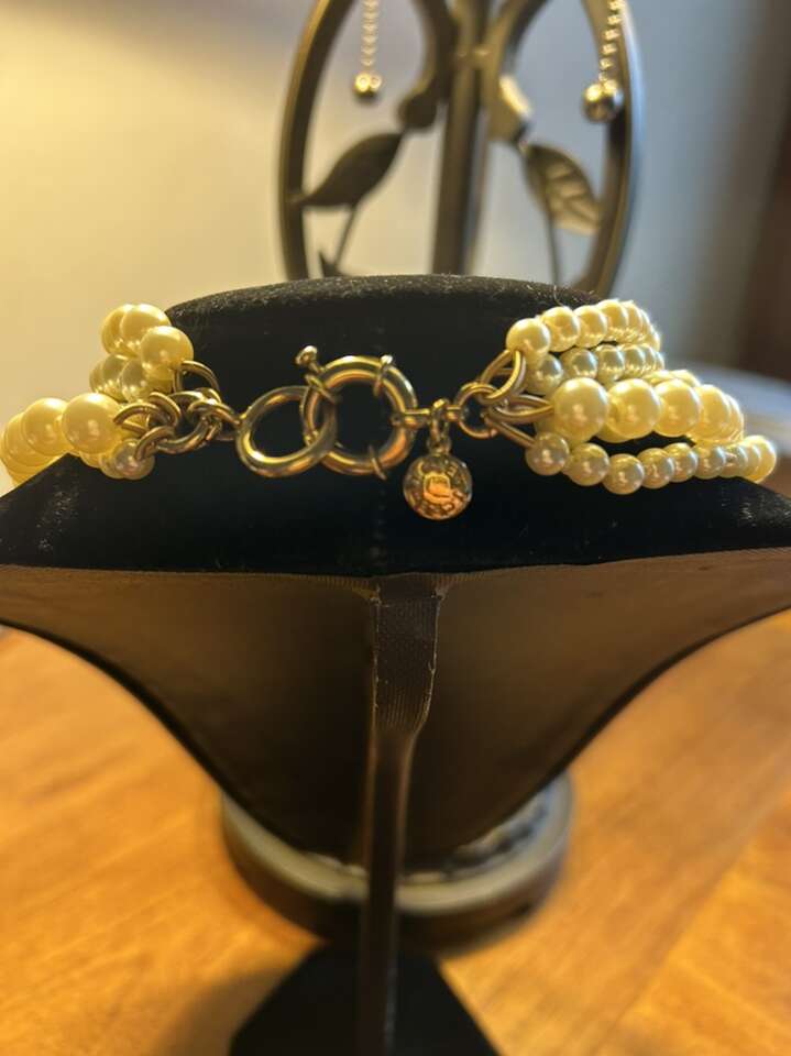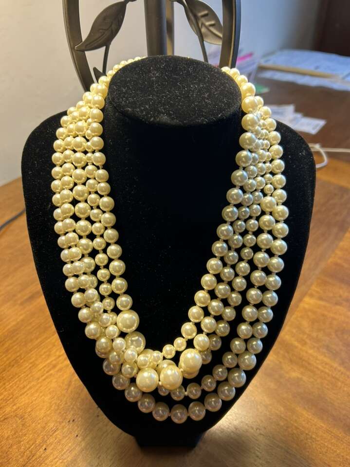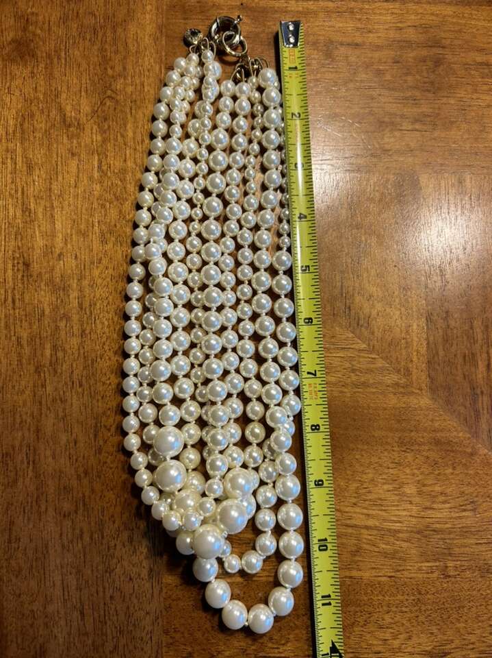 J.Crew five strand knotted ivory Pearl necklace with gold tone hardware in excellent like new condition. Beautiful classic statement piece. Clean non-smoking home. Cash or Venmo. Perfect for a gift. I have lots of other jewelry items available. Porch pick up from Alpine Utah.