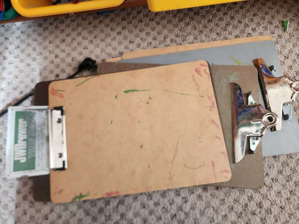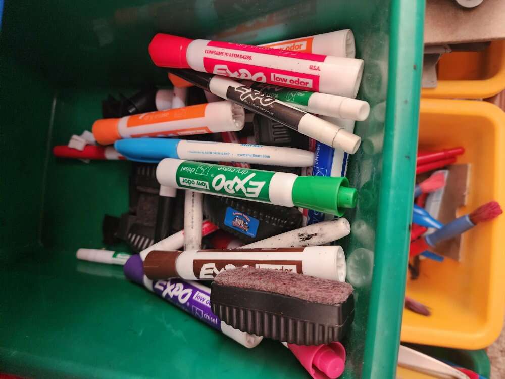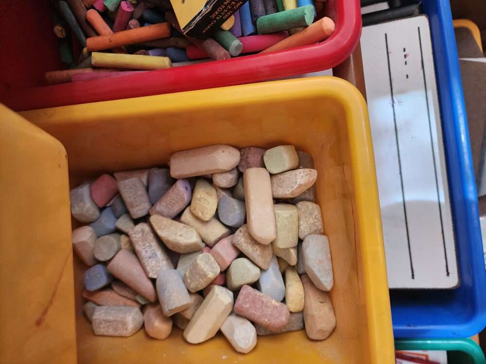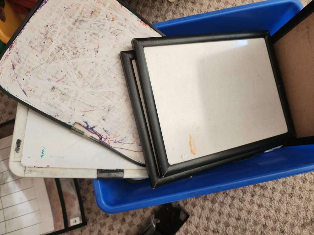 I have chalk and chalk boards, crayons, dry erase sleeves, white boards and markers, cookie sheets, and clip boards. All used for preschool. There are between 8-10 on each group. Crayons $15 Chalk and chalk boards- $20 Dry erase sleeves, markers, erasers and boards $35 Cookies sheets $15 Clip boards $15 Willing to discount to sell it all together.