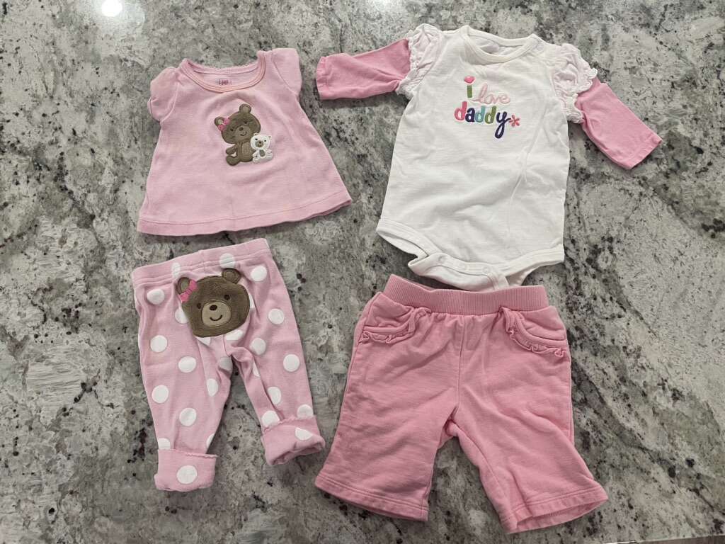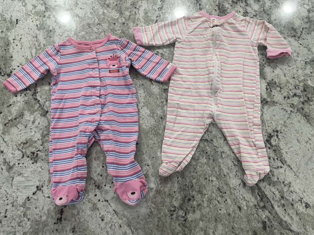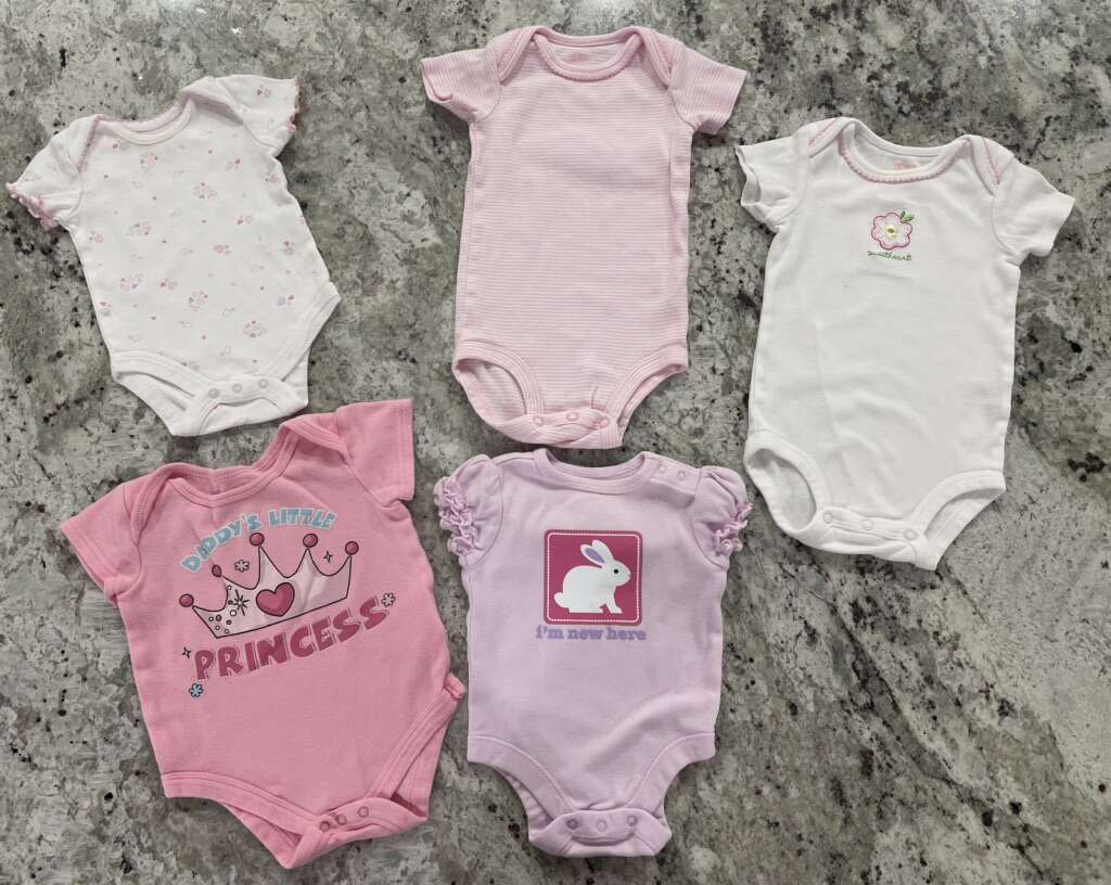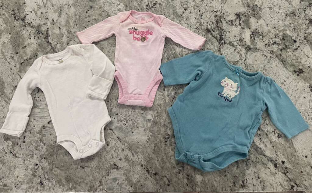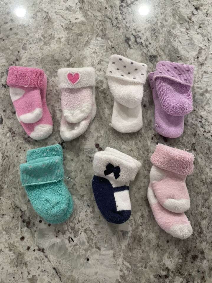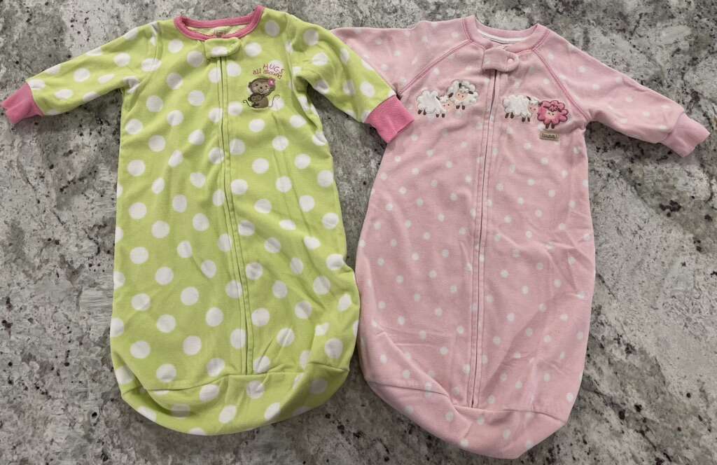 VenmoMonkey hat 3 pair shoes 7 pair socks 5 long sleeve footed pjs 2 outfits 4 dresses 8 long sleeve onesies that fold over hands 2 long sleeve onesies 9 short sleeve onesies 4 pants 1 jacket 1 pair no scratching mittens 1 pair booties 10 hats 2 long sleeve sleeping sack 3 swaddle wraps 13 short sleeve onesies 3 long sleeve onesies 1 Car seat head support