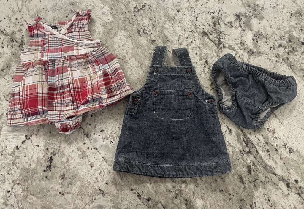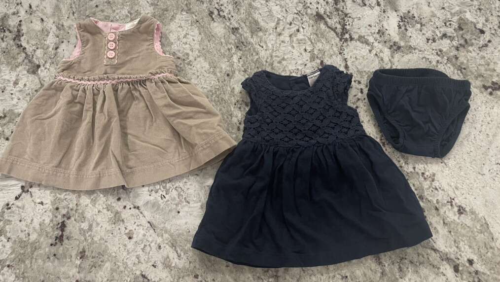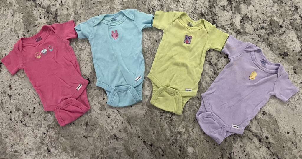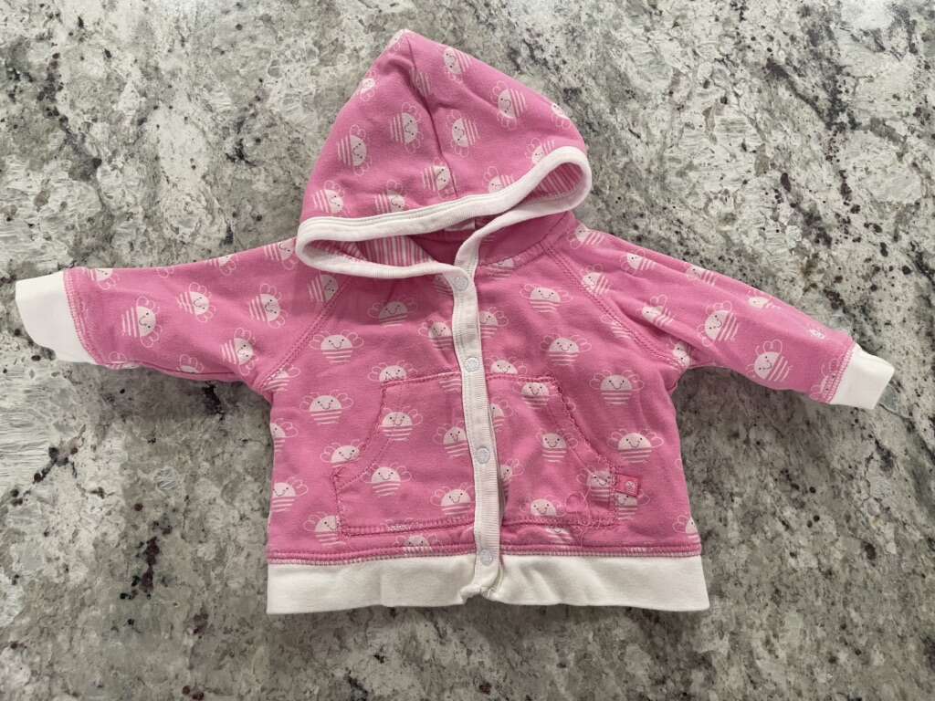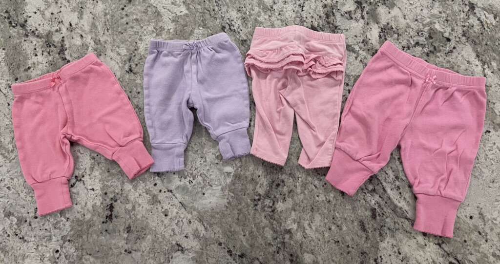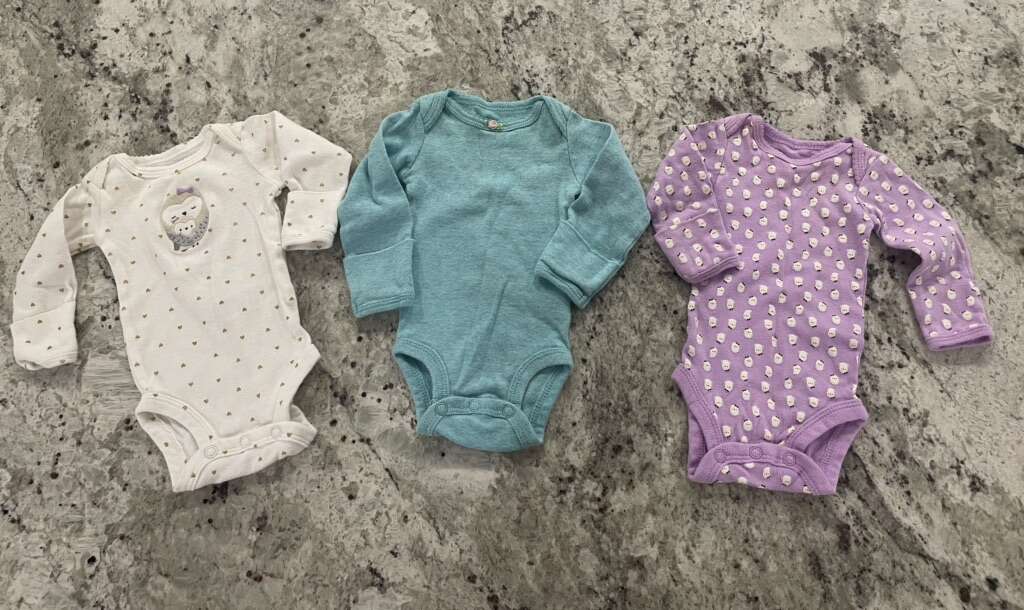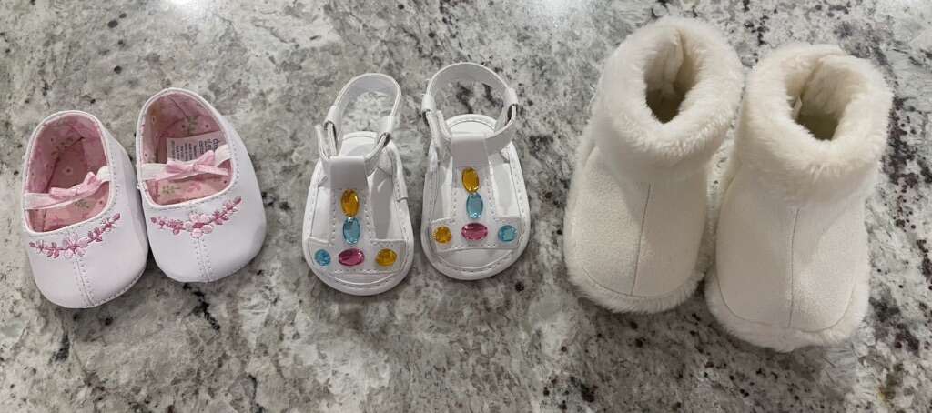 VenmoMonkey hat 3 pair shoes 7 pair socks 5 long sleeve footed pjs 2 outfits 4 dresses 8 long sleeve onesies that fold over hands 2 long sleeve onesies 9 short sleeve onesies 4 pants 1 jacket 1 pair no scratching mittens 1 pair booties 10 hats 2 long sleeve sleeping sack 3 swaddle wraps 13 short sleeve onesies 3 long sleeve onesies 1 Car seat head support