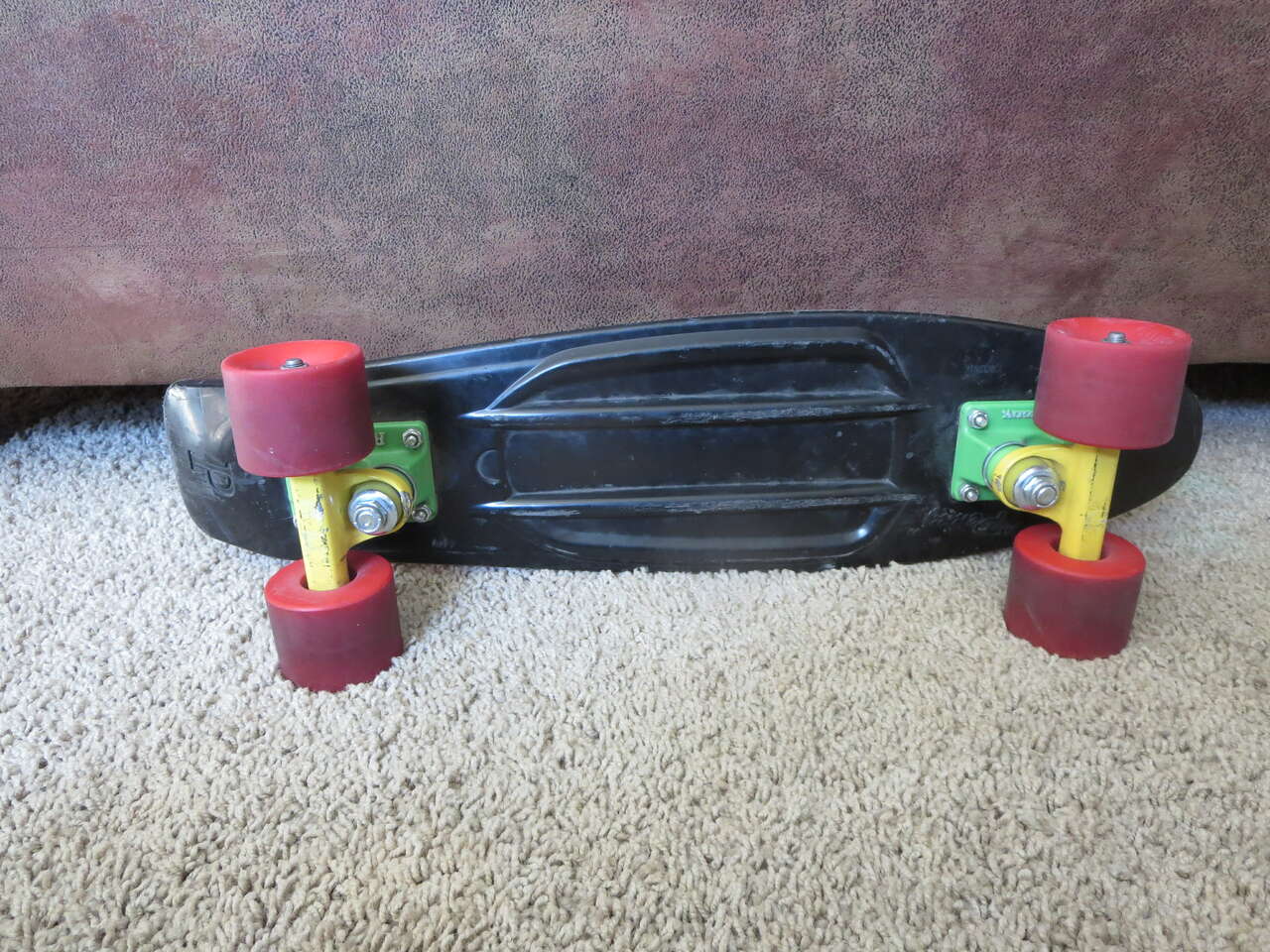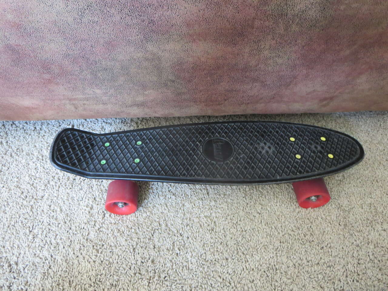I have a. Penny Skateboard 22" Black Deck Red Wheels Green Yellow Trucks. For sale call or text only thanks for looking D.