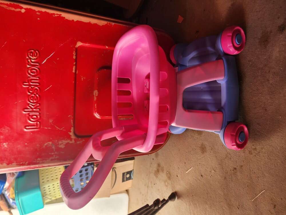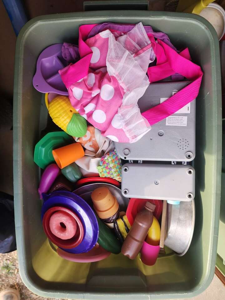 Large tote filled with kitchen food, utensils, cups, and plates. Also, a cash register, blue grocery totes and aprons. Asking 40 obo. If it's listed, it's available. Also, have grocery carts and shopping baskets available. Pink cart $10 Shopping baskets $8 each or $20 for all. $ 55 for everything obo.