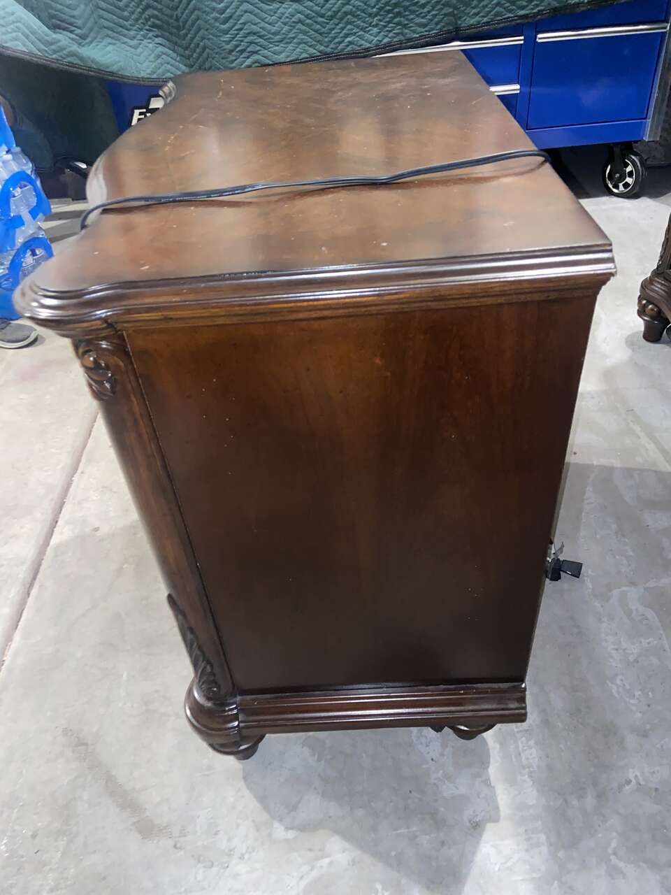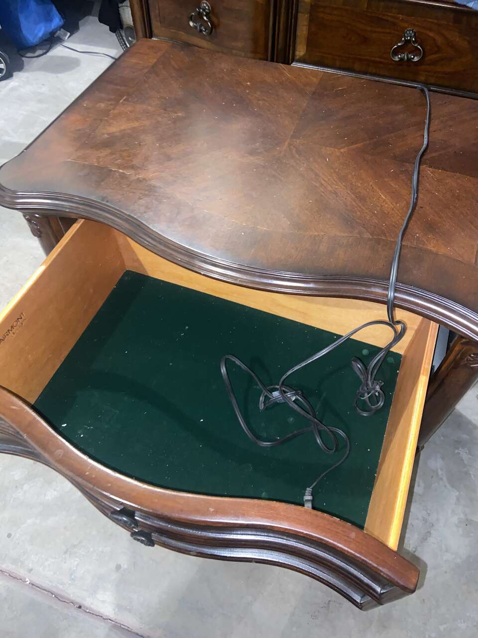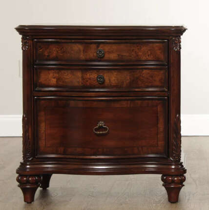 VenmoA Cherry Finish Nightstand with Two Drawers and Brass Hardware, Built-In Illumination.