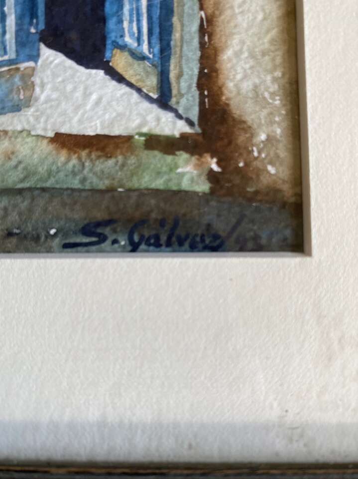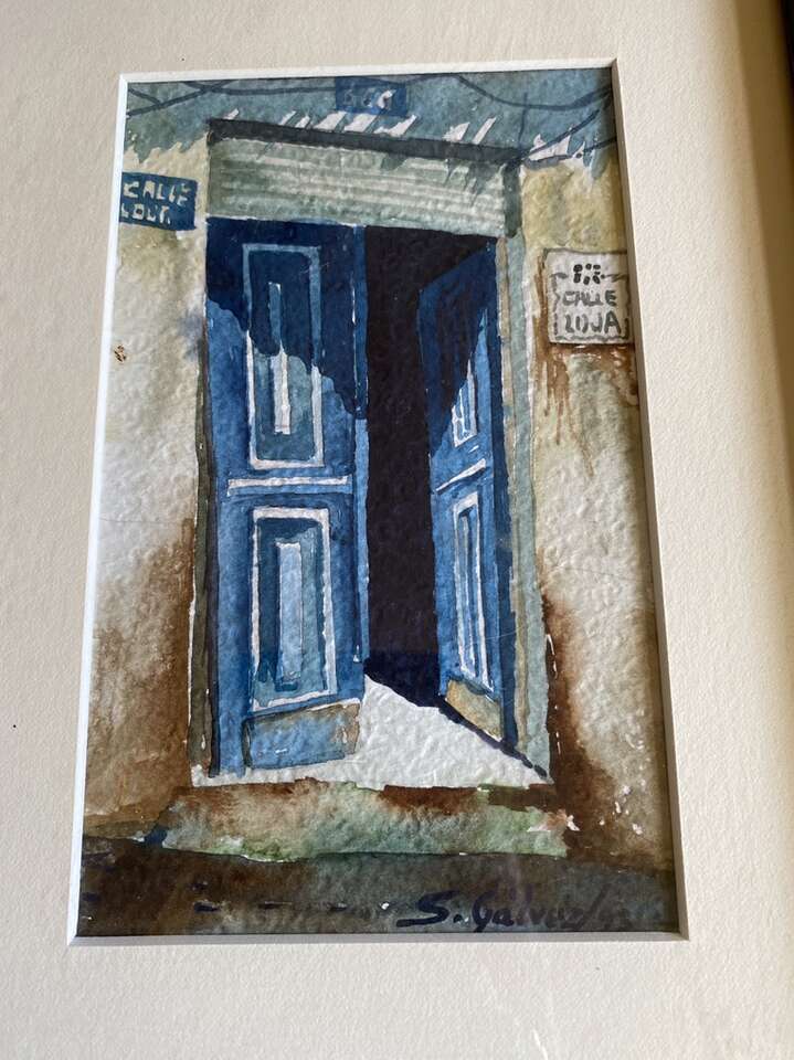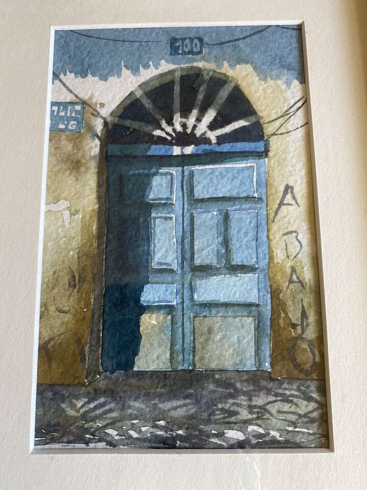 2 Double Frame Watercolor Painting Of Doors Signed 16.5x7 inches