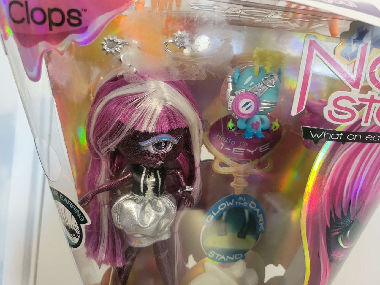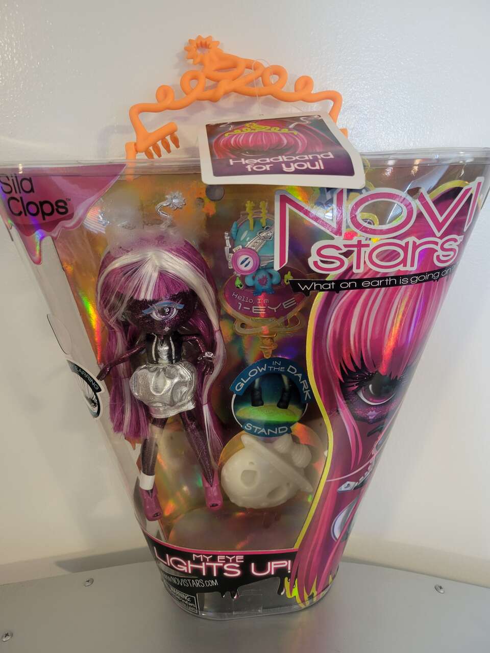 New RARE MGA Entertainment NOVI STARS Fashion SILA CLOPS, My Eye Lights-Up, with pet 1-Eye, and glow in the dark stand, plus Headband