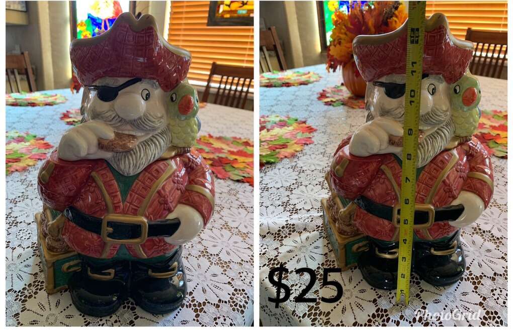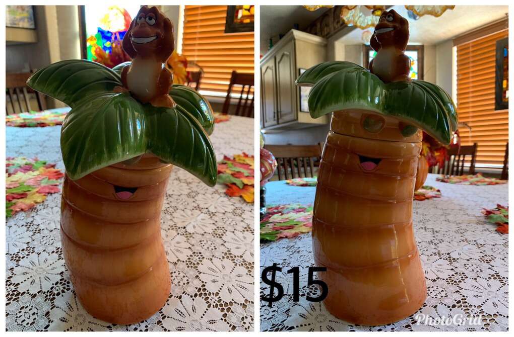 1-Pirate cookie jar-$25 2-Palm tree cookie jar-$15 3-Duck teapot-$15-SOLD