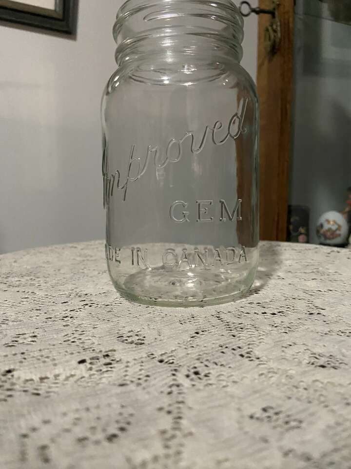 VenmoThis beautiful clear jar and glass flat were produced from the late 1920's through the 1930's in Canada. Gem Jars were only manufactured in Canada and were the most popular jars on the Canadian prairies for over 100 years! The Jar is smooth aside from the beautiful script logo. There are no bubbles in the glass although it appears wavy. A beautiful addition to your jar collection.