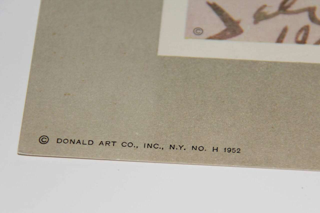 Dali Nature “Birds” Watercolor Lithograph Print A rare period vintage full-color print of Surrealist painting "Birds" by Salvador Dali from a First Edition art folio of The Albert D. Lasker Collection. Printed in Switzerland in the 1950s, probably by Albert Skira. Printed on one side. Signed in the print. First Limited and only edition. Copyrighted in NY, USA. Superb quality and excellent condition - no damage, minor edge wear. Never framed. Holland, 1952.