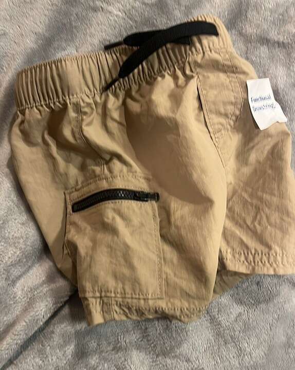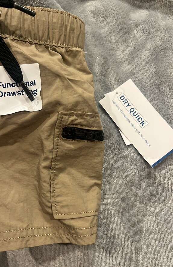 Brand new with tags Very cute Utility shorts Zipper hip pockets Functional drawstring Dry quick Lightweight breathable fabric that dries quick. Old navy Tan with black drawstring and black zippers