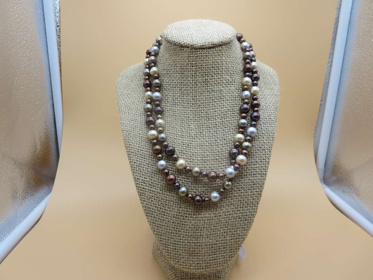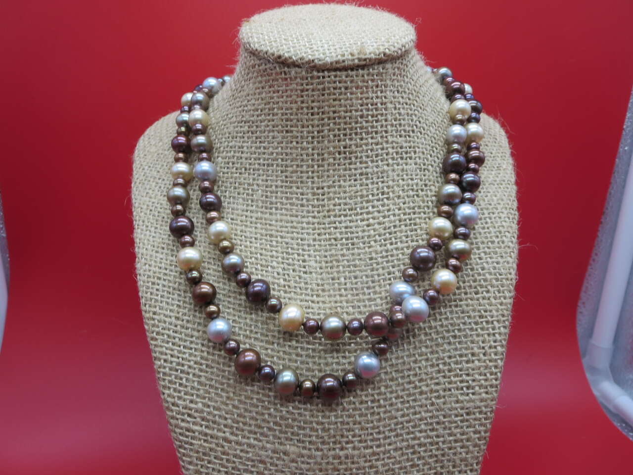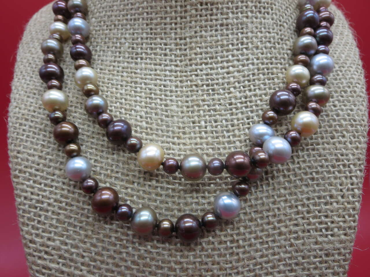 I have a beautiful. Double strand fresh water pearls peach 14k gold clasp for sale call or text only thanks for looking D.