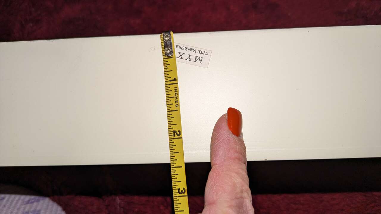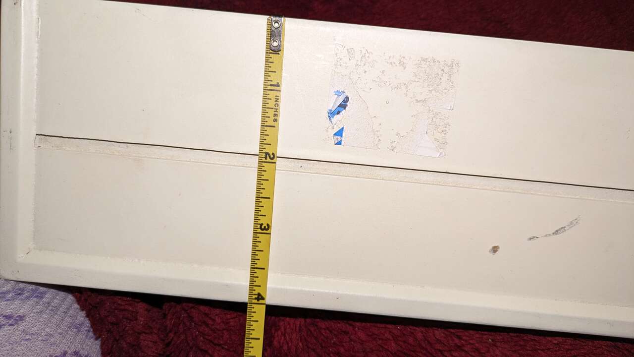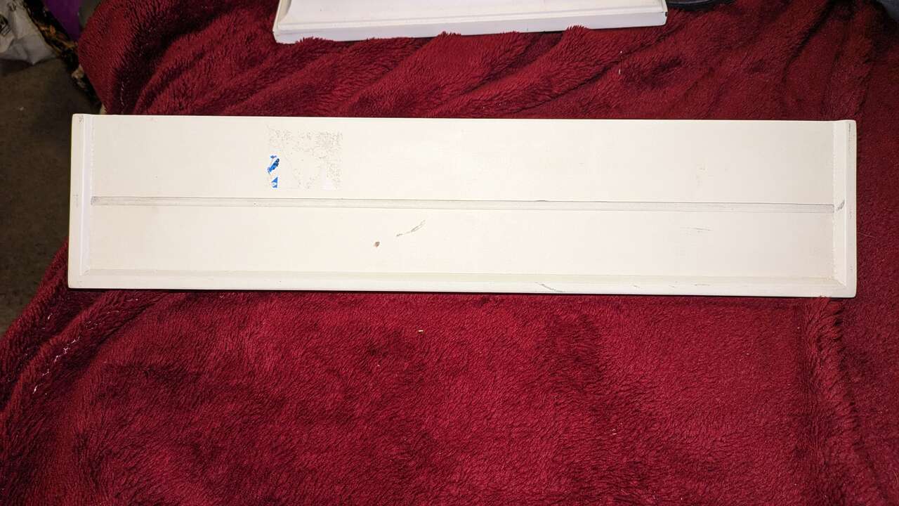 White Long Floating Shelf. Pictures have the measurements. Needs a new coat of paint. Text if interested. Asking $3.00