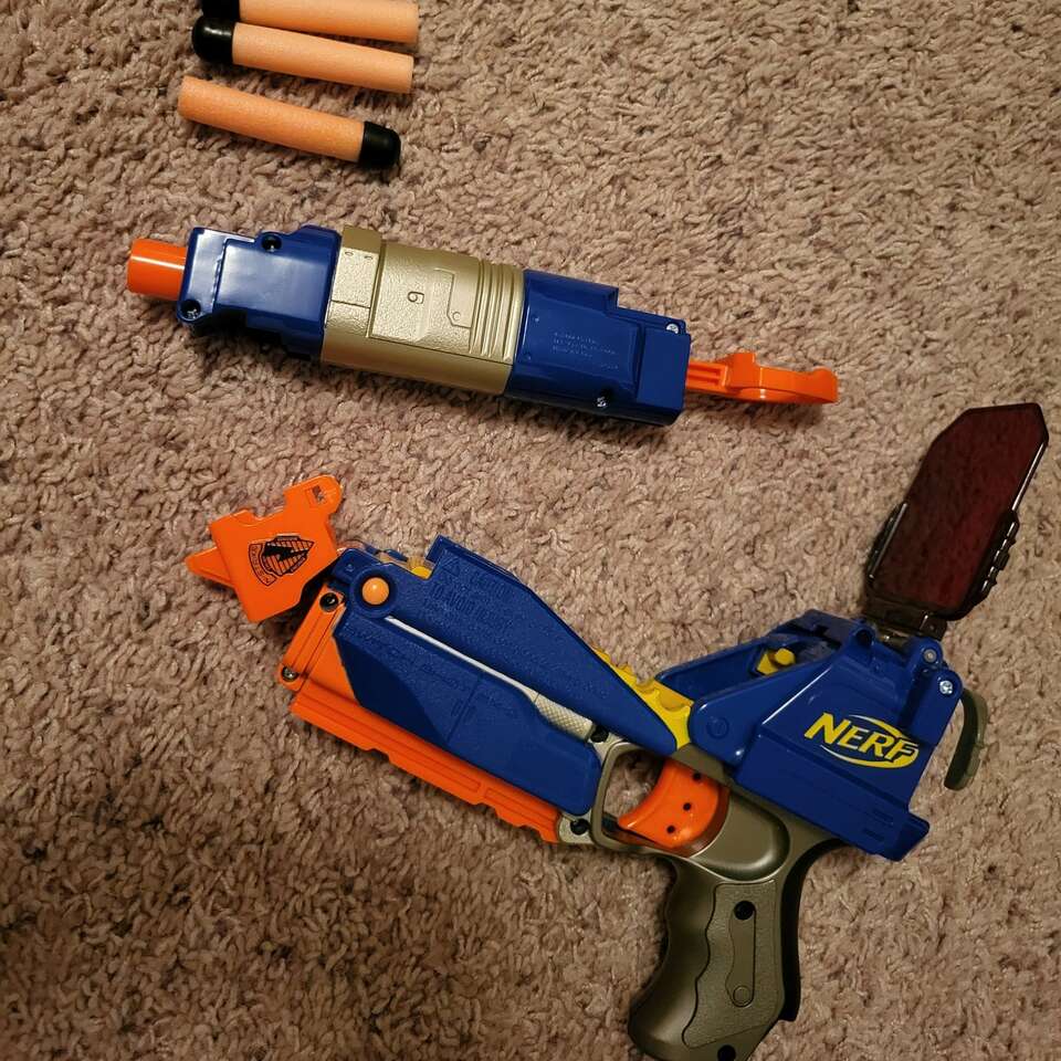 Nerf wii game with nerf gun and wii attachment Nerf fun in great shape with no issues Game disc has no scratches Text preferred
