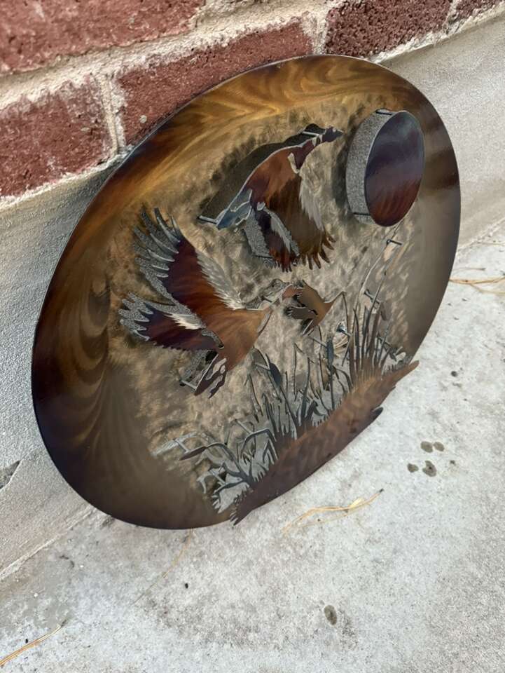 Migration Geese Oval Reflections in Metal.