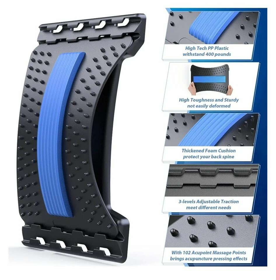 Back Stretcher for Lower Back Pain Relief, 3 Level Adjustable Lumbar Cracker Board, Back Cracking/Massager Device for Scoliosis, Spine Decompression, Upper & Lower Back Support
