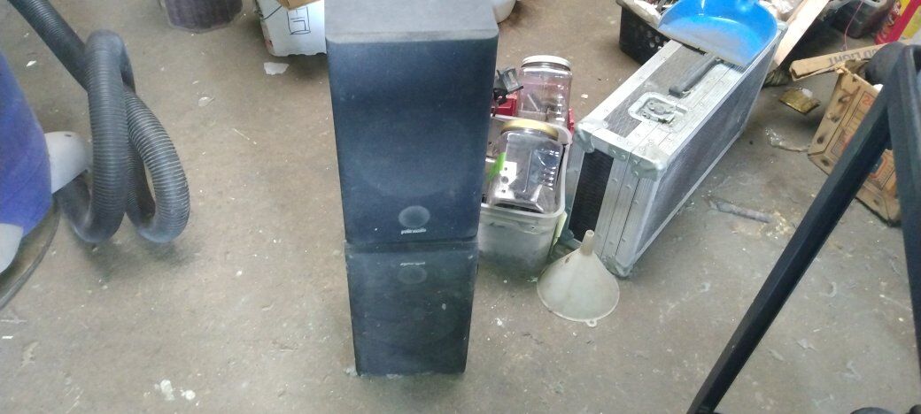 Two made in USA Sony speakers, 180 watts input 8 ohm and 2 small Polka speakers for one price.