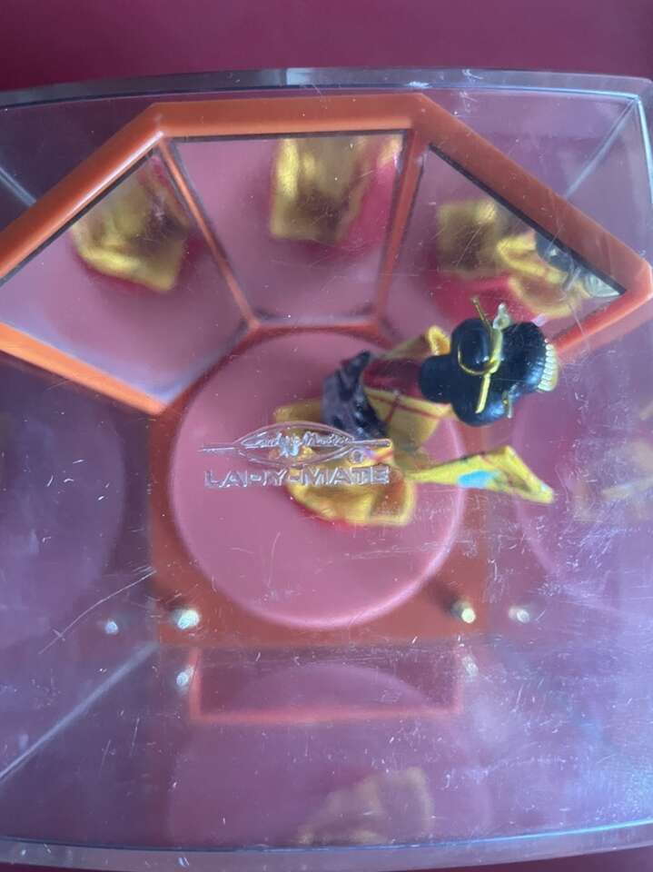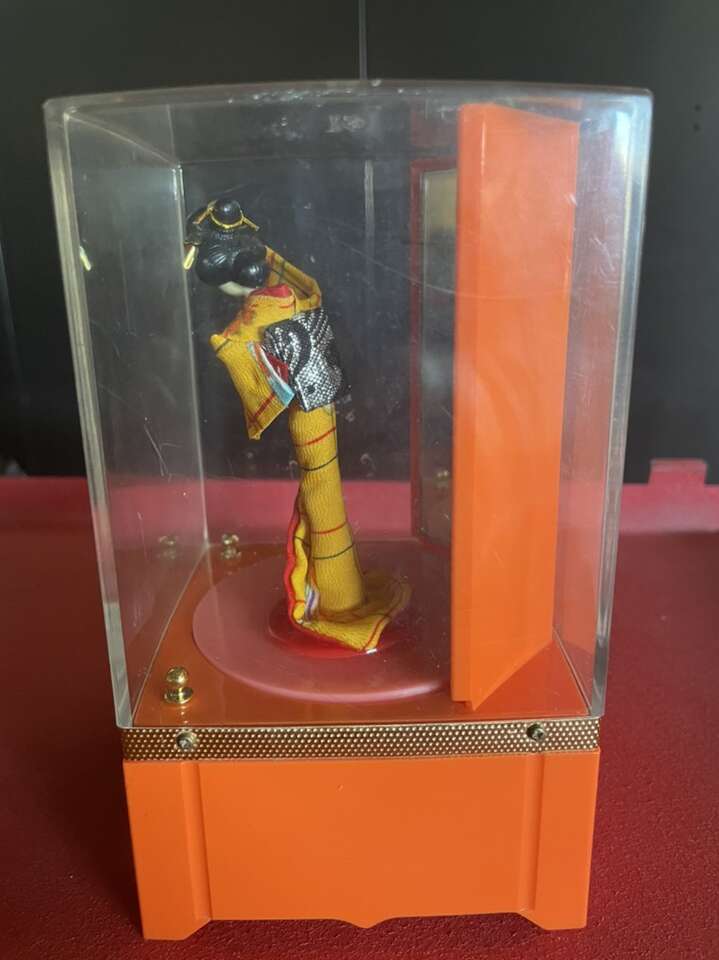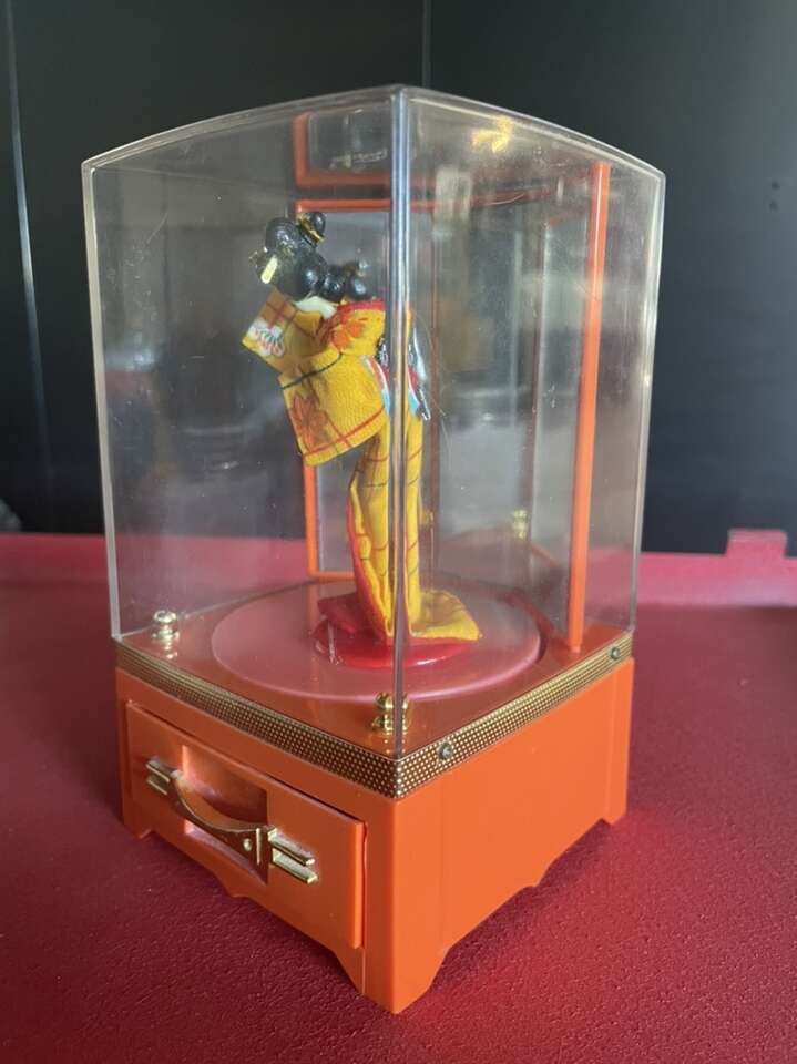 Amazing vintage lady mate musical box made in the 70’s in Japan. The doll dressed as a geisha spins around and dances when the jewelry drawer is opened. Beautiful vibrant colors and fully complete to my knowledge.
