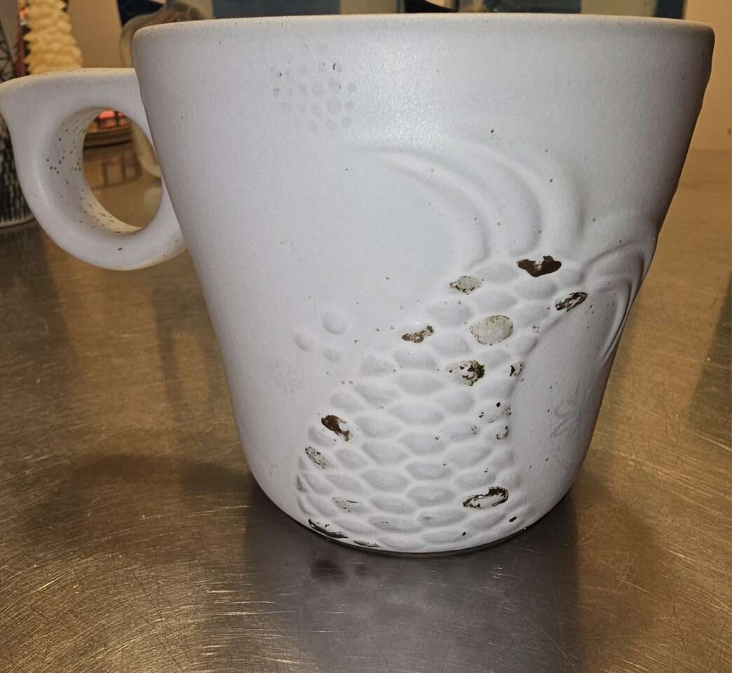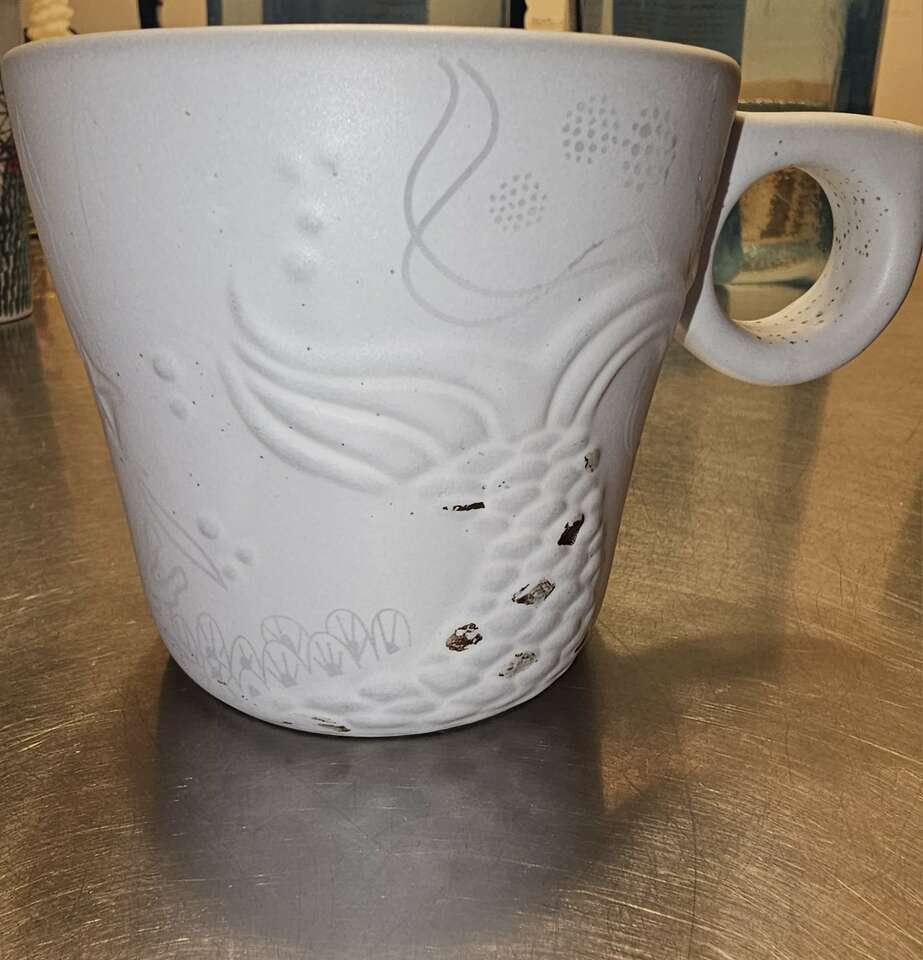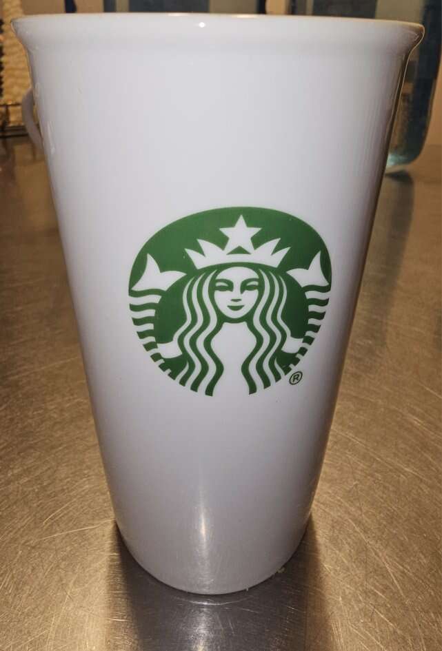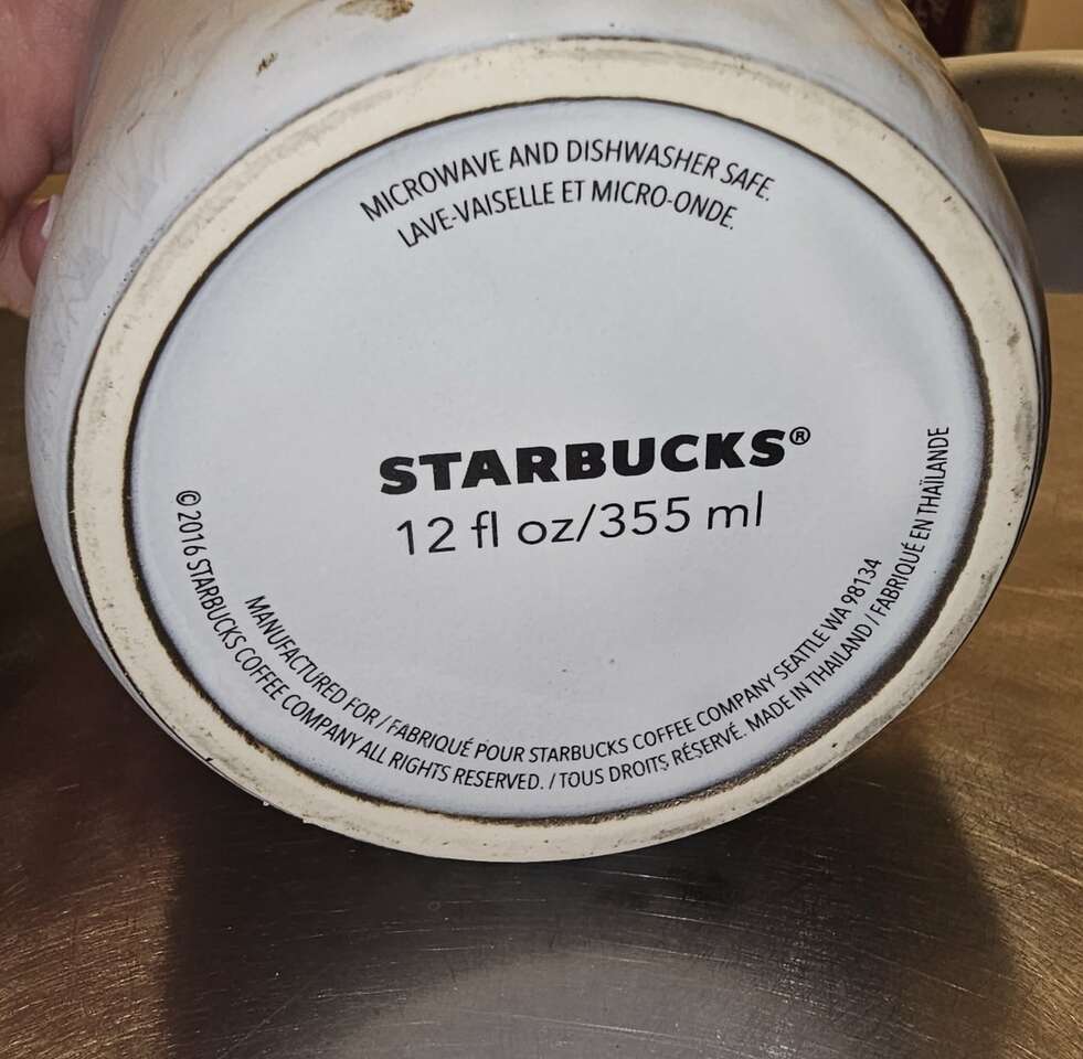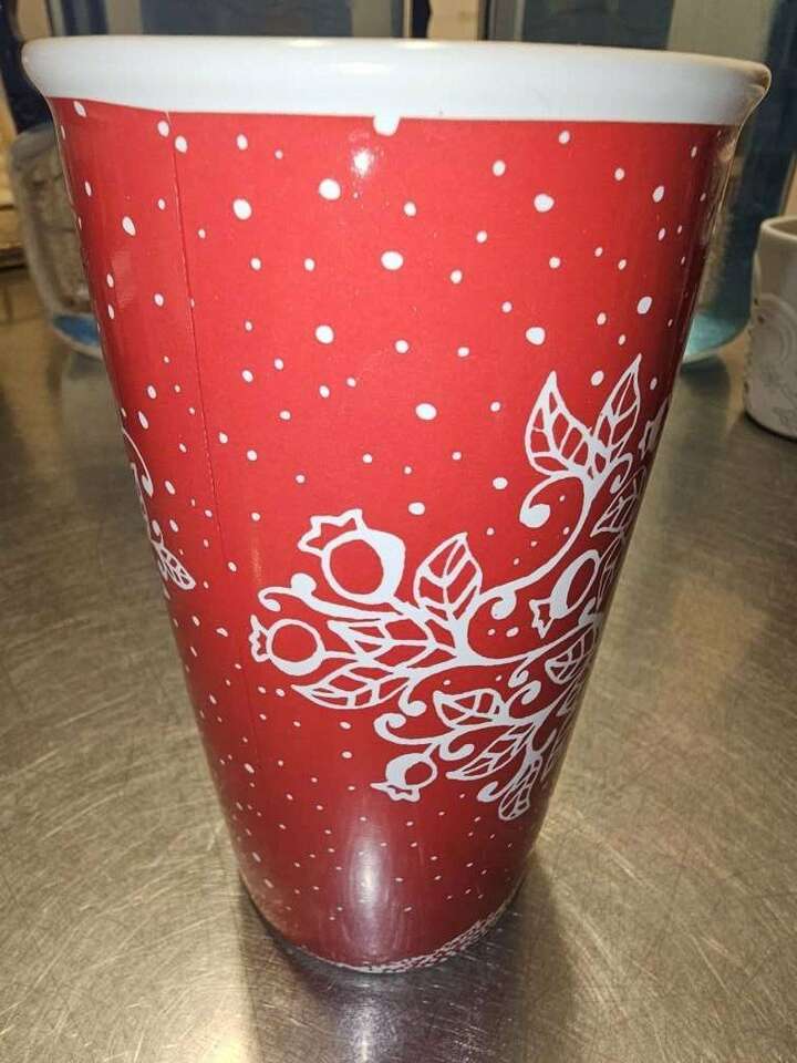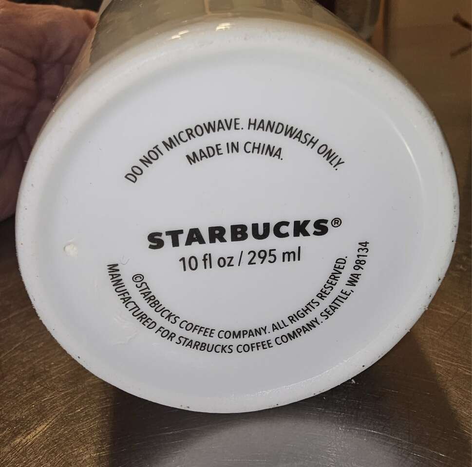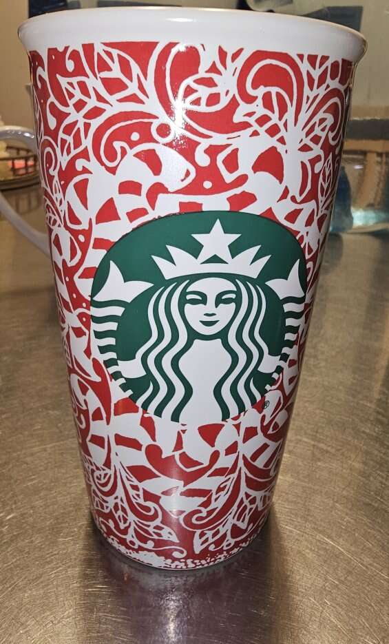 Group of 8 pretty Starbucks Mugs. Different sizes, different shapes and 4 with handles, 4 without. Four are Christmas themed.