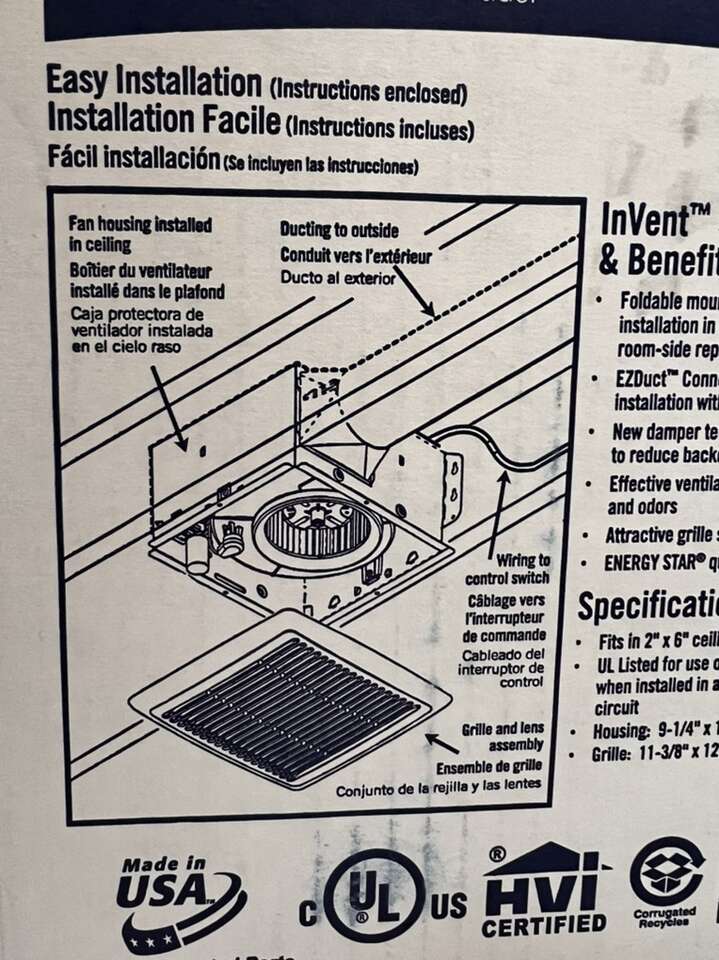 HIGH-QUALITY FAN: Quiet, energy efficient exhaust fan to help control air quality is powerful enough for rooms (including bathroom) up to 75 sq. ft. EFFICIENT: Powerful ventilation reduces to quickly eliminate fogged mirrors, so your vision will always be clear and your surroundings will always be comfortable EASY INSTALLATION: Easy to install new/replace existing product with retrofit installations that can be done entirely from the room-side – no attic access required RELIABLE PERFORMANCE: With our TrueSeal Damper Technology, InVent fans reduce air leakage by up to 50% compared to competitive models, resulting in better home performance via blower door tests and reducing cold and warm air backdrafts GREAT FOR BATHROOM: UL Listed for use over tubs and showers with a GFCI circuit so you can capture the steam before it spreads throughout the room by locating your fan exactly where you need it the most. Rated Amps:0.3