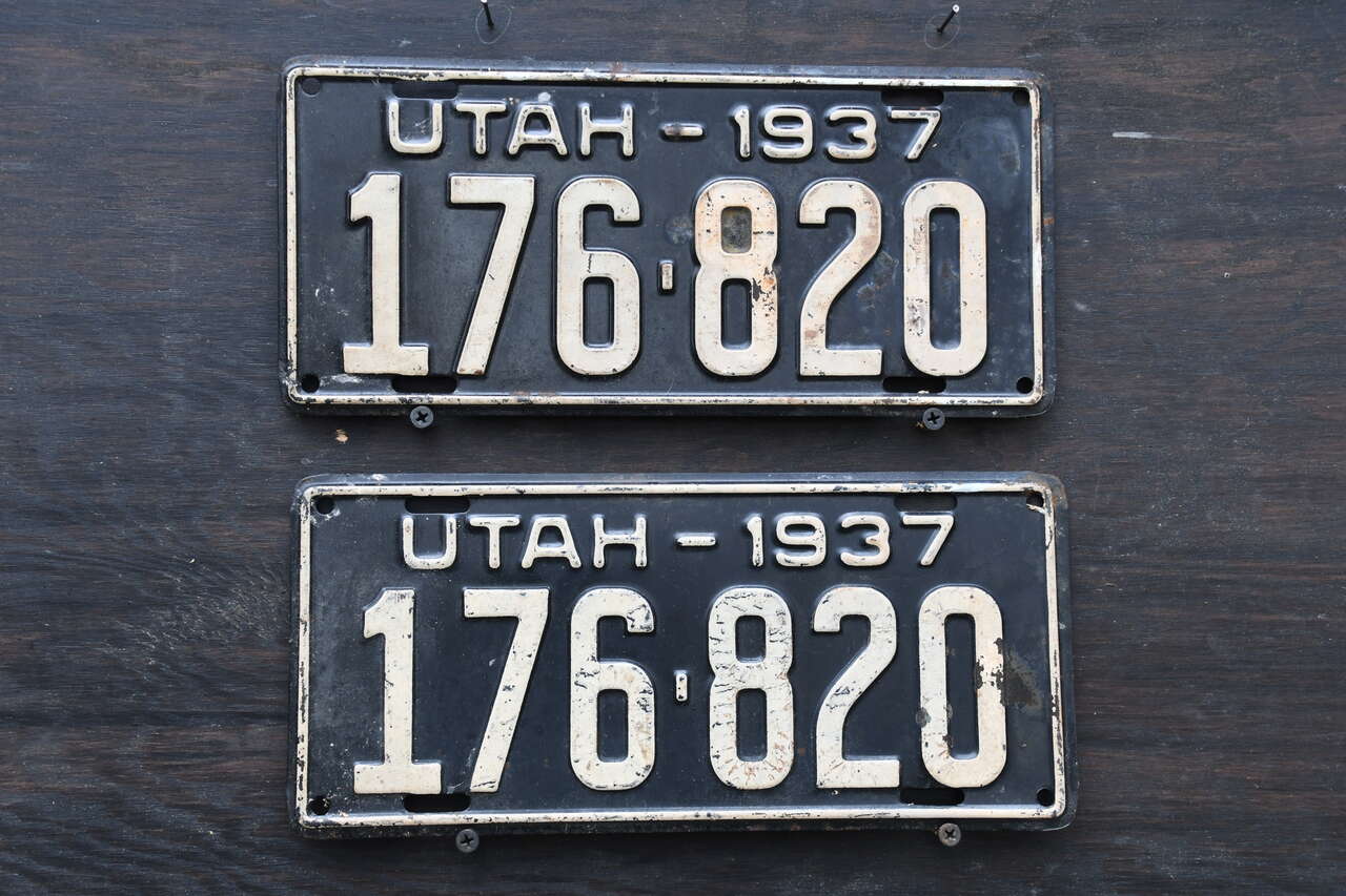 Utah 1937 Original Paint License Plate Pair. Nice unrestored original Pair. Cash only in Plain City.