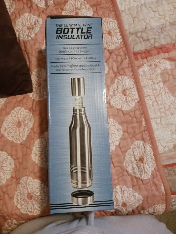 New in box. Stainless Steel Wine bottle insulator. Fits most 750 ml wine bottles. Great gift or packaging to give a bottle of wine as a gift. Cheaper than wrapping.
