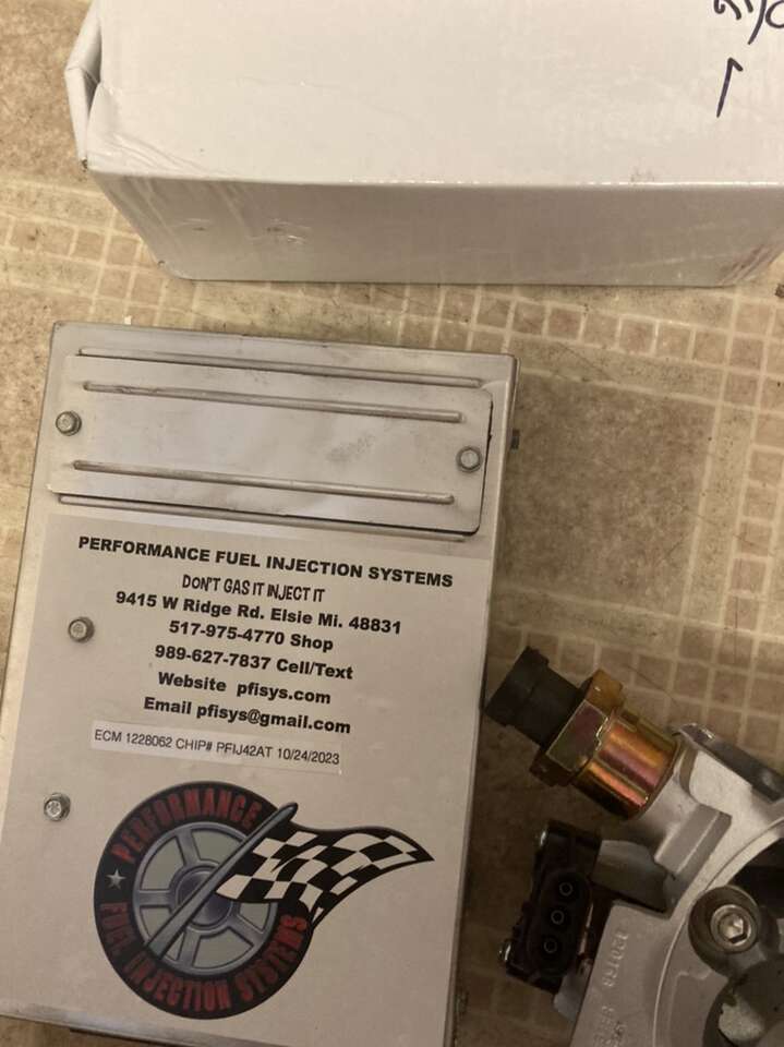 TBI - Rebuilt 1.750 Throttle Body Wiring Harness Check engine light Fuel pump w/fuel filter and mounting strap Fuel Pump block off plate 2BBL CNC Machined for Jeep 2BBL manifold OR Adapter plate - Precision machined aluminum pocket plate 4BBL For other manifolds contact us Fuel tubes Heated O2 Sensor Map Sensor IAC Sensor (Idle air control motor) New on TBI TPS Sensor Coolant Temperature Sensor Necessary hardware and gaskets to mount system to intake manifold (Please specify what brand Manifold you have) Fuse link Air cleaner stud NEW Large cap distributor converted to a 7 pin Ingition module for complete spark control ECM (maybe re-manufactured) with custom calibrated EPROM chip (installed in ECM) This is a great kit for that Rock Crawler or that hunting rig. Get better mileage easier starts. Check out the website pfisys.com. Performance Fuel Injection makes kits for that Rock Crawler, Hot Rod, Classic Car and Marine Systems. Call with questions