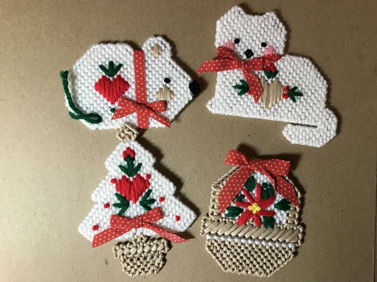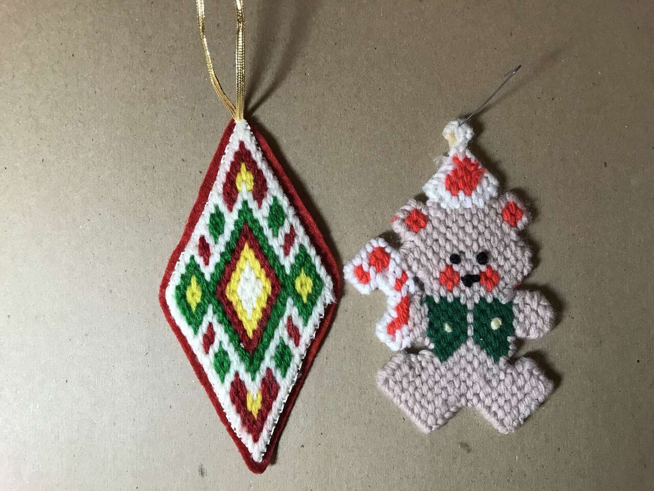 Plastic Canvas Set of 8 Needlepoint Ornaments, plus a bear and a diamond, pics 1 - 3. $10.00