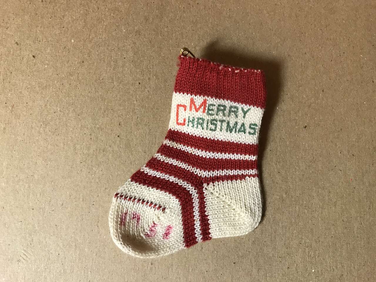 Vintage 50's Tiny Knit Merry Christmas Stocking Cotton Sock red/white/green, 3" long, pic 12 - 13. $10.00