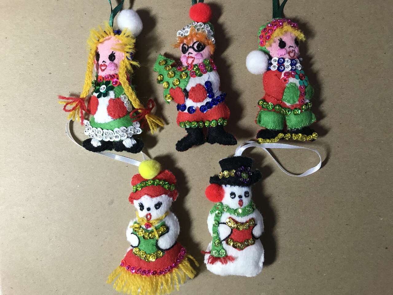 Set of 3 Handmade with Felt, Sequins, Beads and stuffed, pic 34. Snowman and snowwoman no longer available. $10.00