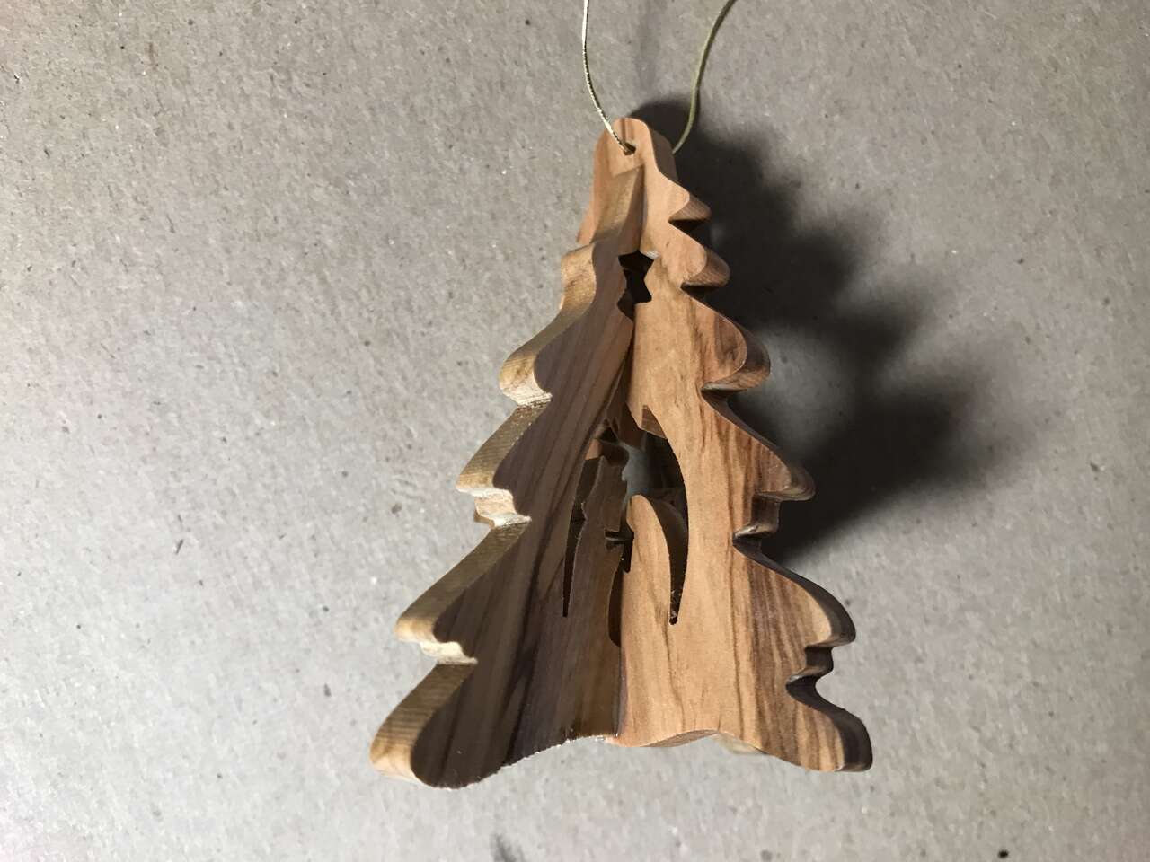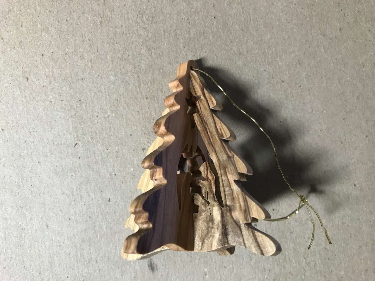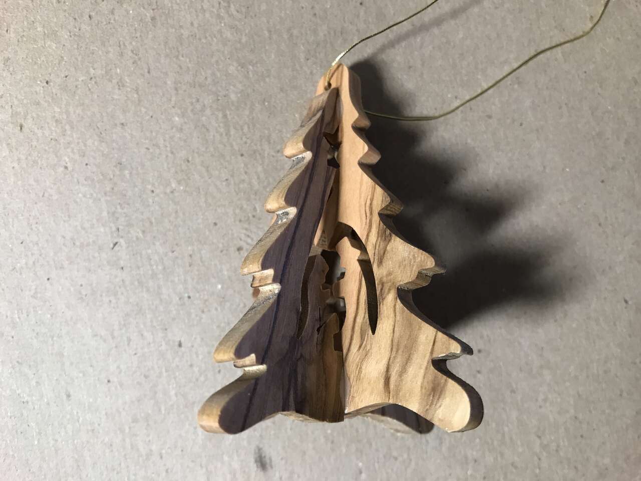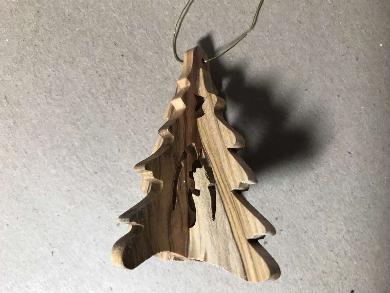 Bethlehem Nativity Olive Wood Tree Ornament, 3", pics 49 - 54 and Lot of 7 Ornaments, Bird, Bulb with ribbons and pins, Angel, Plastic White Violin, plastic gold Bell, Plastic Gold Boot, Wooden Airplane, pics 55 - 56. $10.00