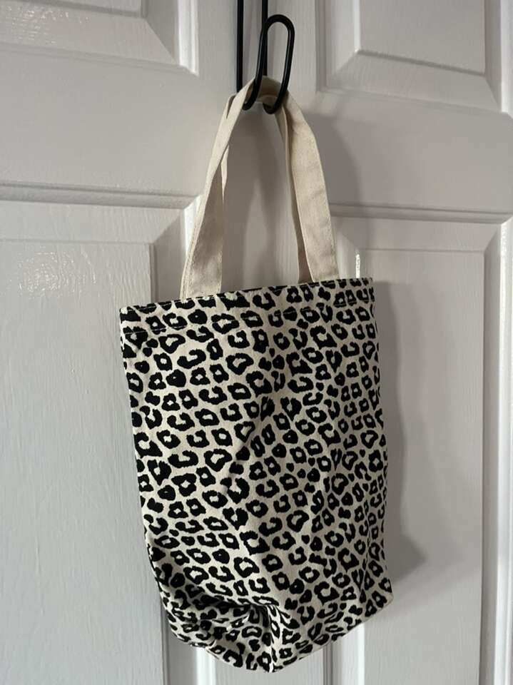 Small cheetah print tote bag with straps 18 1/2L x 10W