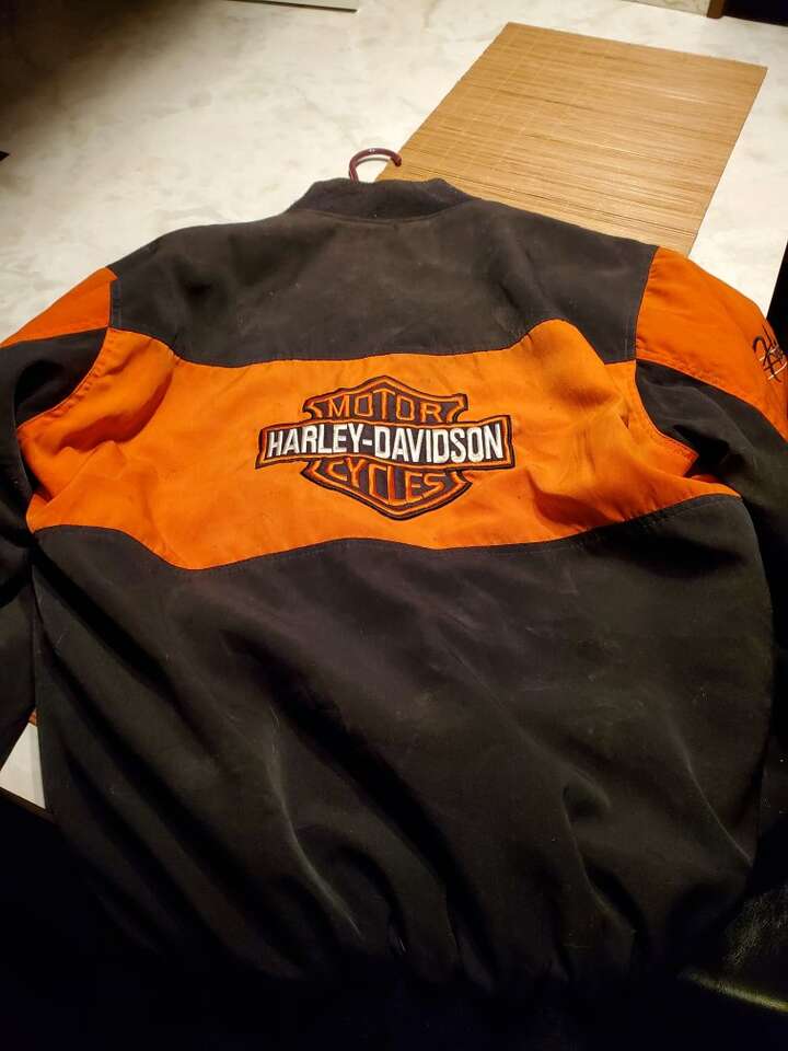 Harley Davidson Black/Orange Motorcycle Nylon Bomber Jacket/Racing Jacket/Windbreaker, Large