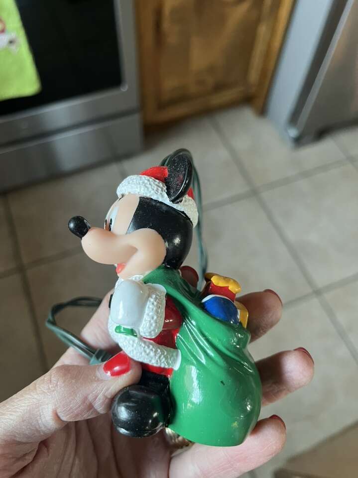Disney Santa Mickey Mouse plug into tree ornament 4”
