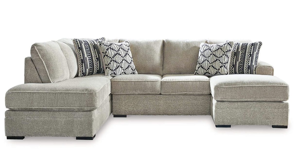 This sectional caters to your need for contemporary comfort. It’s decked out in feel-good fabric in a versatile hue. Family-friendly and ideal for hosts with the most, two chaises give more people the space the sprawl out. Quality time has never been so cozy.Includes 2 pieces: left-arm facing sofa chaise and right-arm facing corner chaise