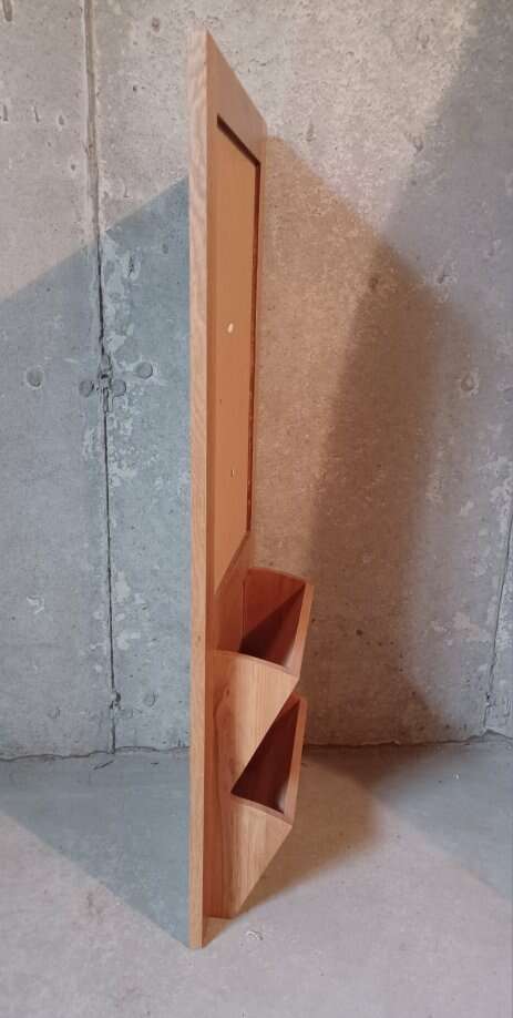 Wood and cork memo board (can attach things with tacks) above two large mail holding boxes--size of entire mounting board is 36 inches high by 16 inches wide--only used a short time-several months maybe--asking $10 or best offer!