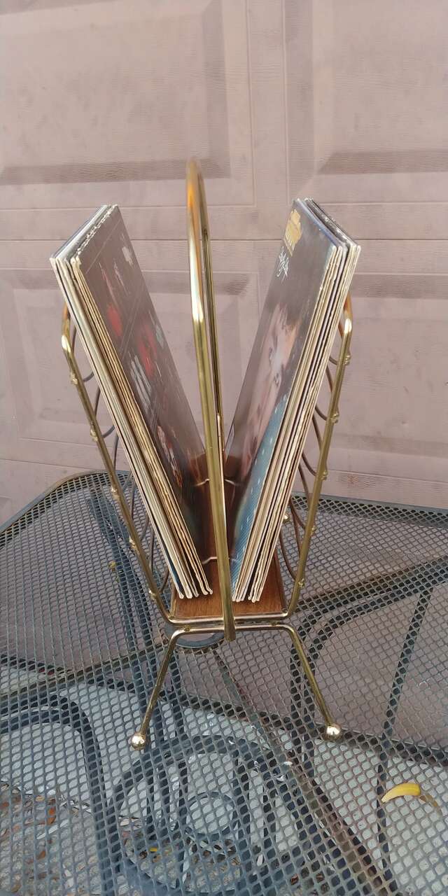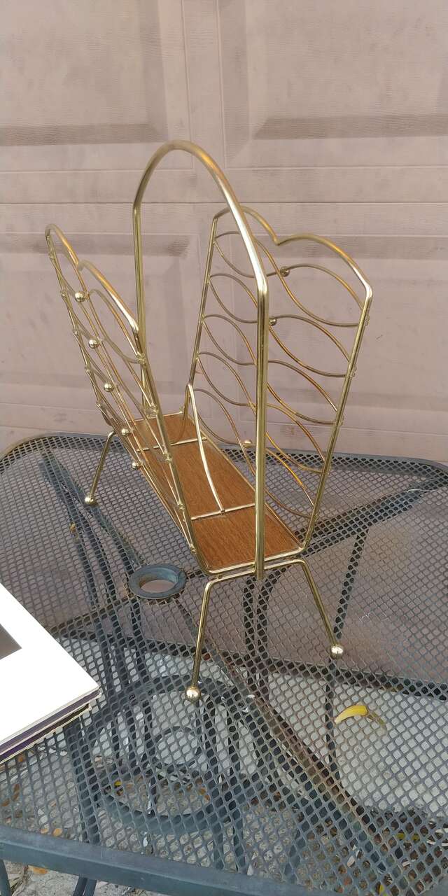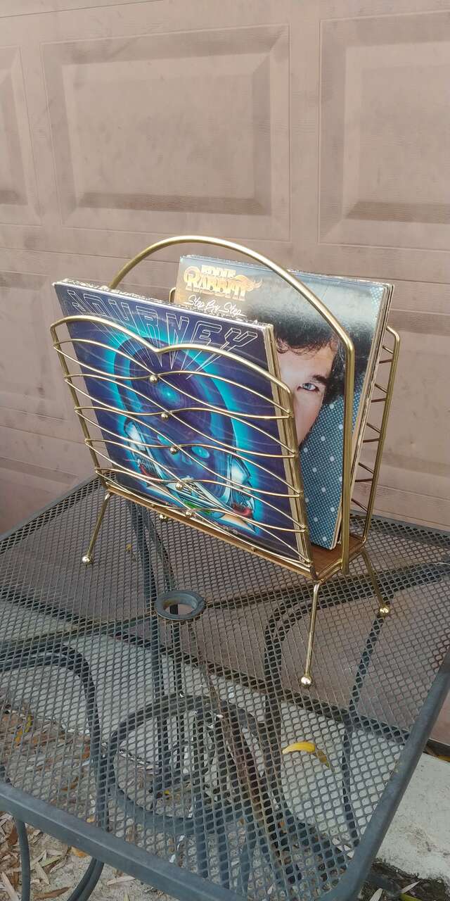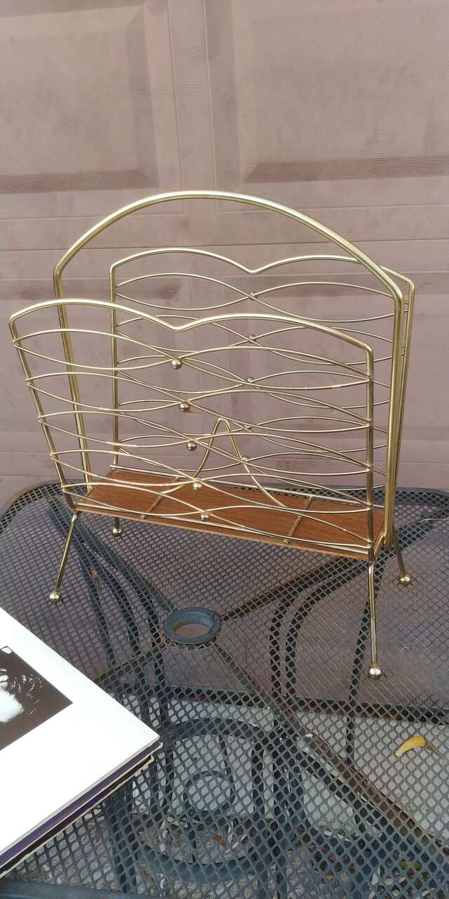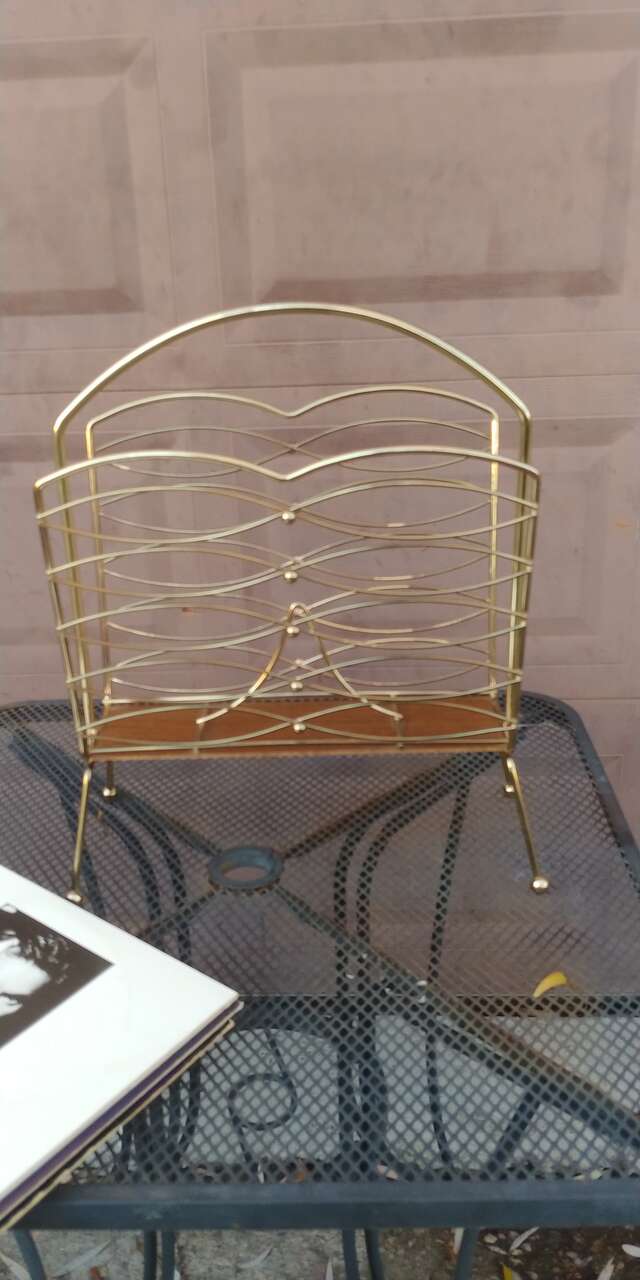 VenmoBeautiful MCM Gold metal record, magazine or towel rack. Cool design, open ends for towels. Great size. 14.5 w 9d 19.5 high. With handle. Easy to move around.