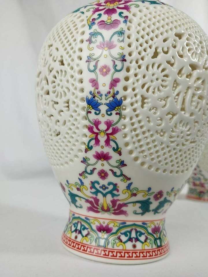 These vases 10 inches tall are handmade in one of the most prominent Chinese towns known for its exquisite craftsmanship. Jingdezhen.