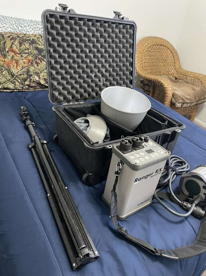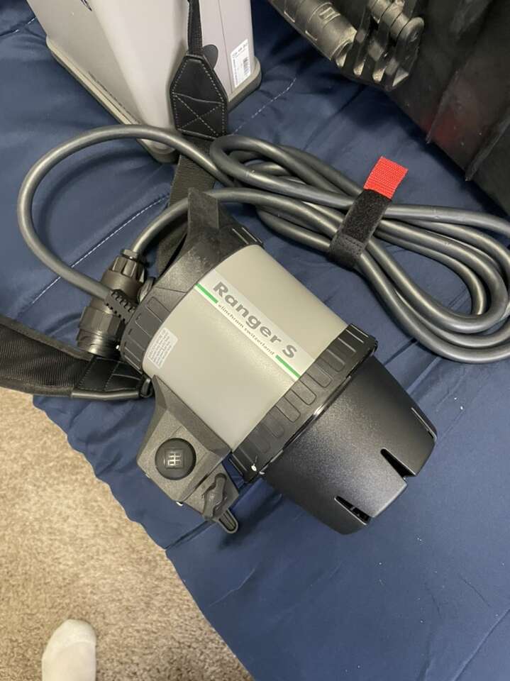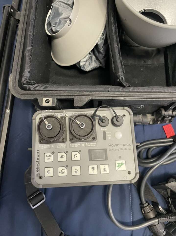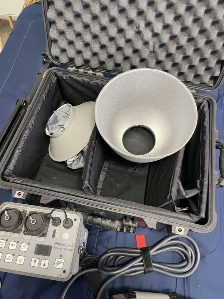 Elenchrome ranger speed As flash kit with ranger s head, includes everything seen here, stand, hoods, rolling case