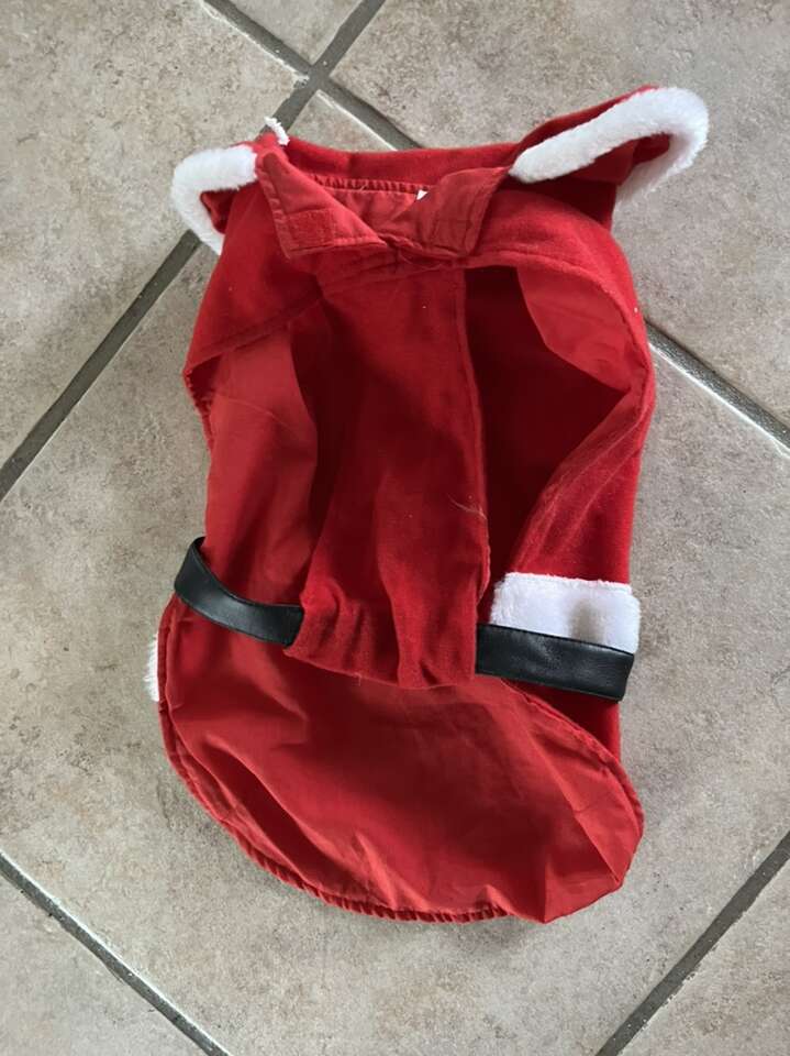 Santa Claus dog outfit size medium 16 inches long red,white,black