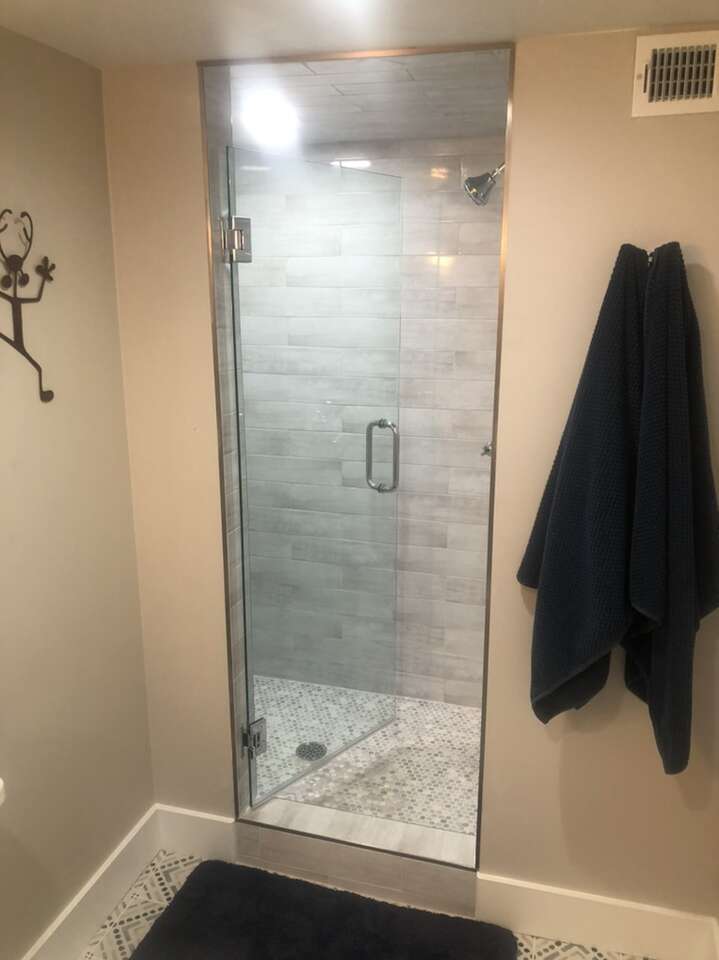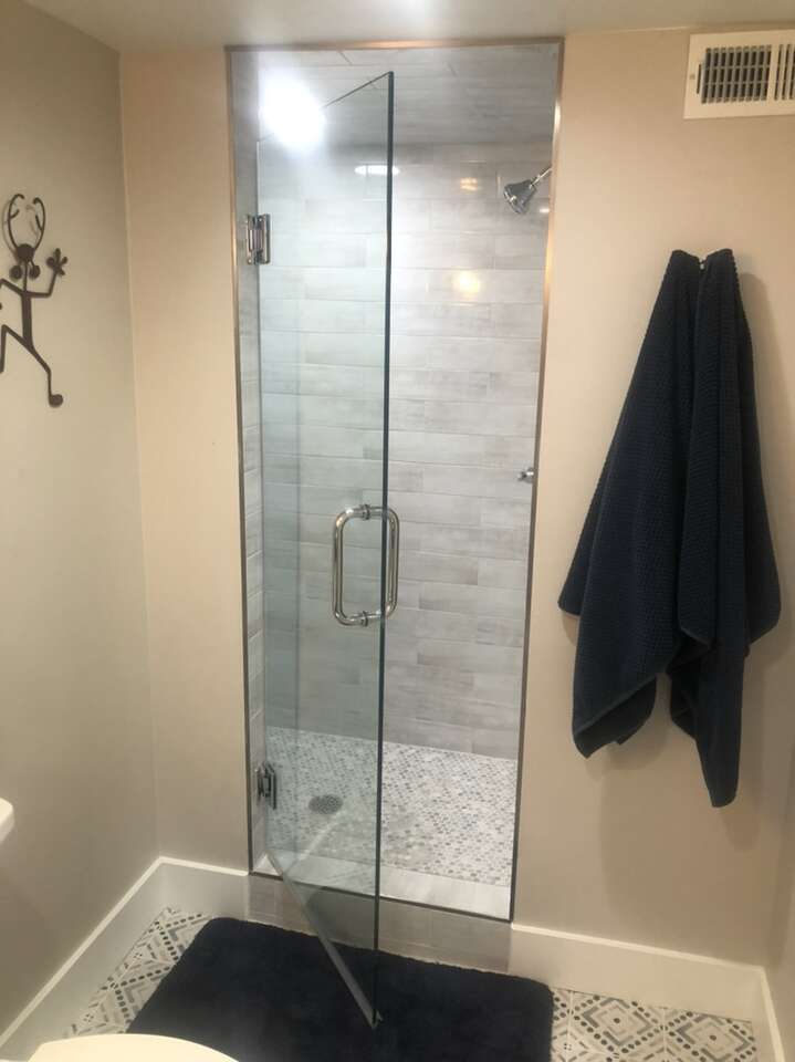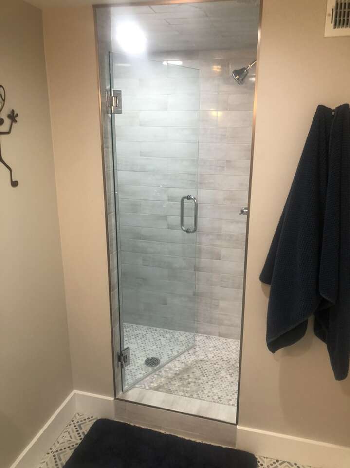 Euro frameless shower door, 3/8” glass, hardware color of choice, matte black, chrome, brushed nickel, or oil rubbed bronze. 30”w x 78”h