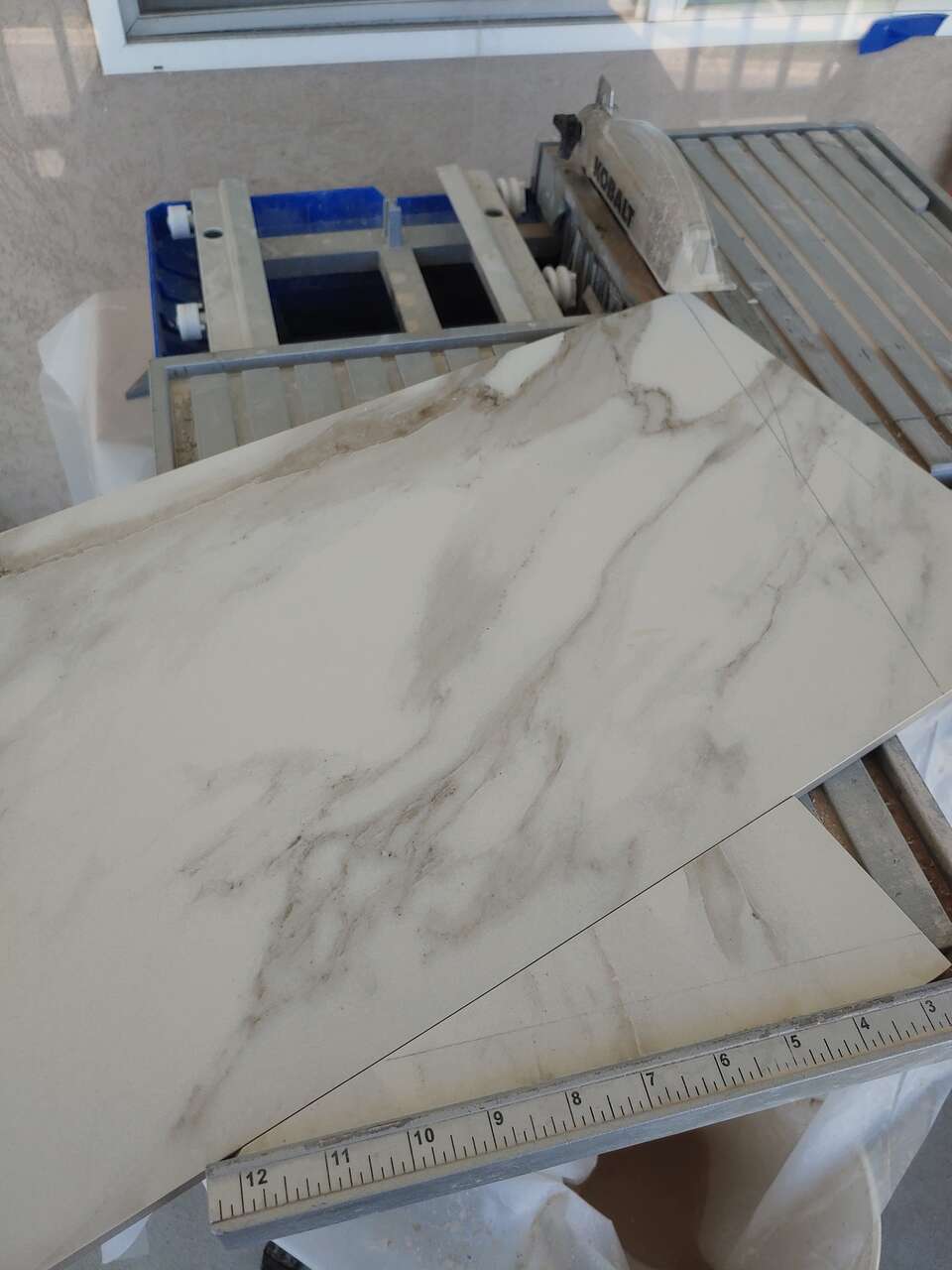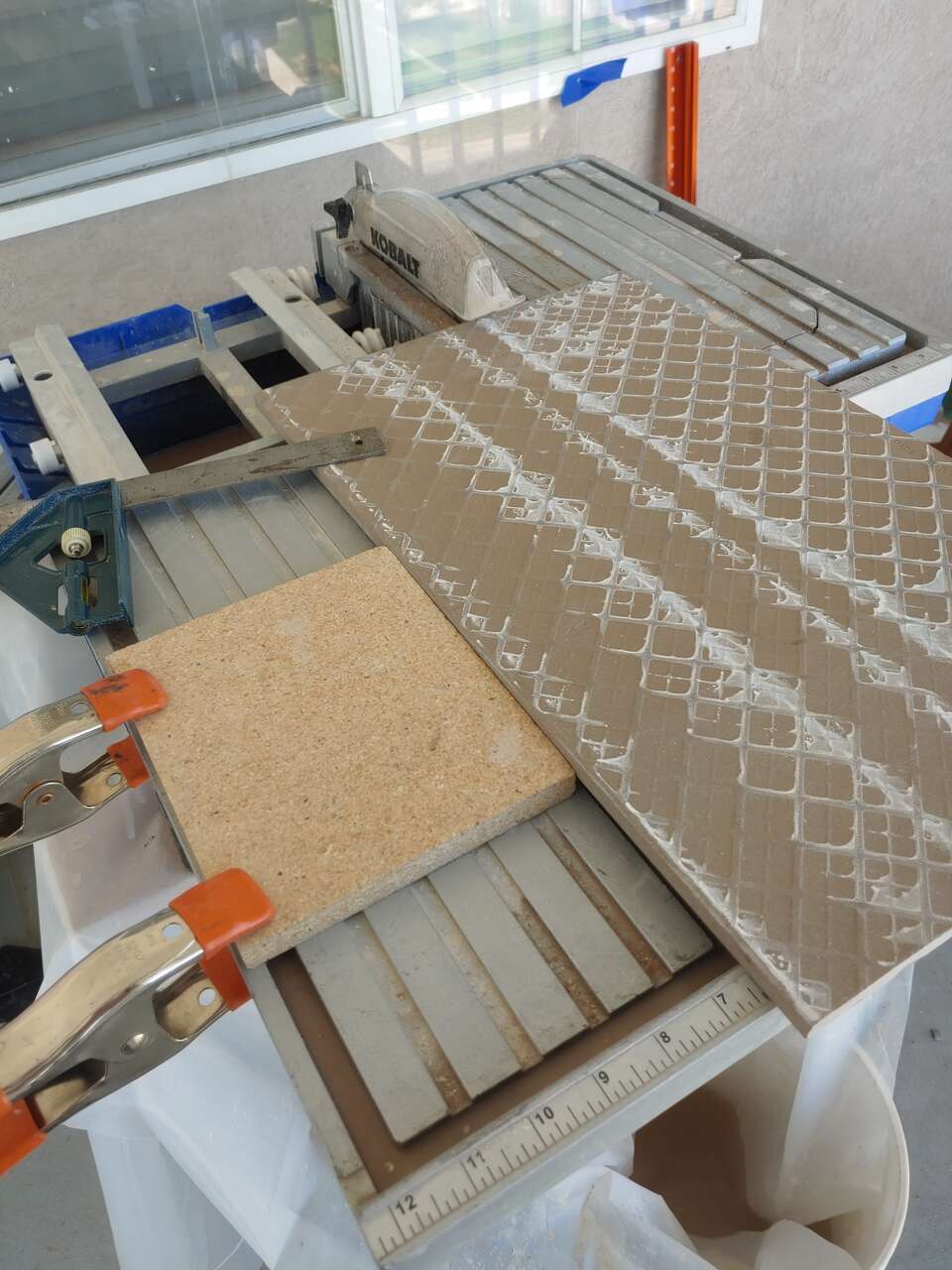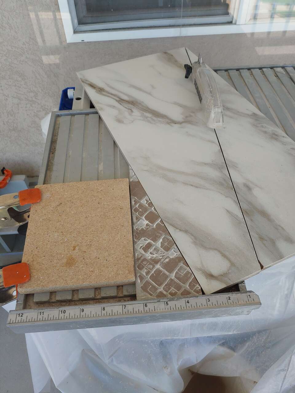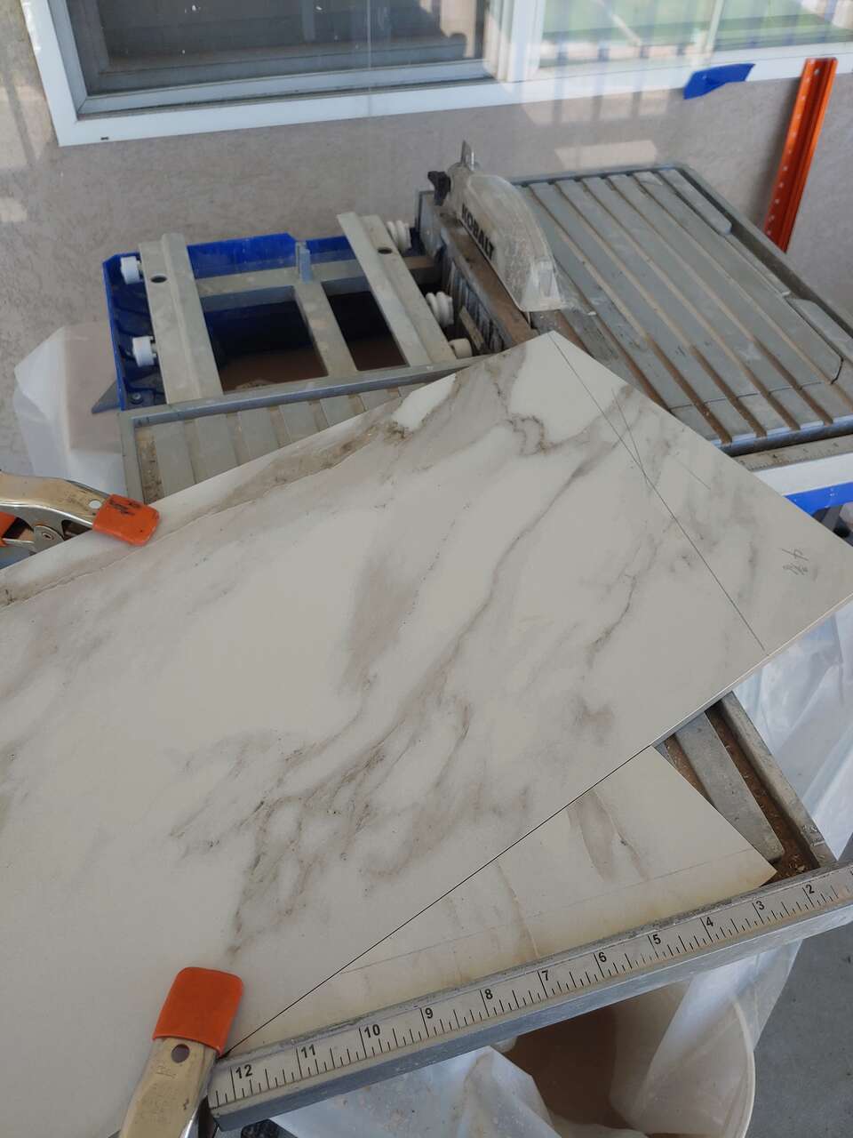 Venmo7-inch sliding tile saw with diamond blade. Smooth action in excellent clean condition. Advertised as 18" Rip Capacity, but if you look at my pictures you'll see that you can easily cut 24" tile even on an angle. Rental is $35 per week; $90 for up to three weeks maximum. I disassemble and detail clean this after each rental. I charge a $30 cleaning fee for this. If you hose it off well, I'll reduce the cleaning fee to $20. $75 deposit, refunded (less the cleaning fee) when the saw is returned in undamaged codition. If you are interested, I also have a Dewalt grinder with a diamond cutoff/grinding disk and a shaping tool. I also have a small diamond hole saw that will work in your drill. I will rent them for an additional $30 ($10 if you have your own grinder) for the entire rental period. This makes triming around fixtures a breeze. BY ACCEPTING THIS RENTAL, YOU VERIFY THAT YOU ARE COMFORTABLE WITH USING POWER TOOLS (ESPECIALLY THE GRINDER) AND ARE RESPONSIBLE FOR THEIR SAFE OPERATION.