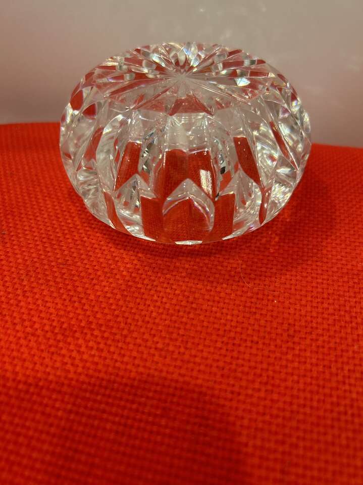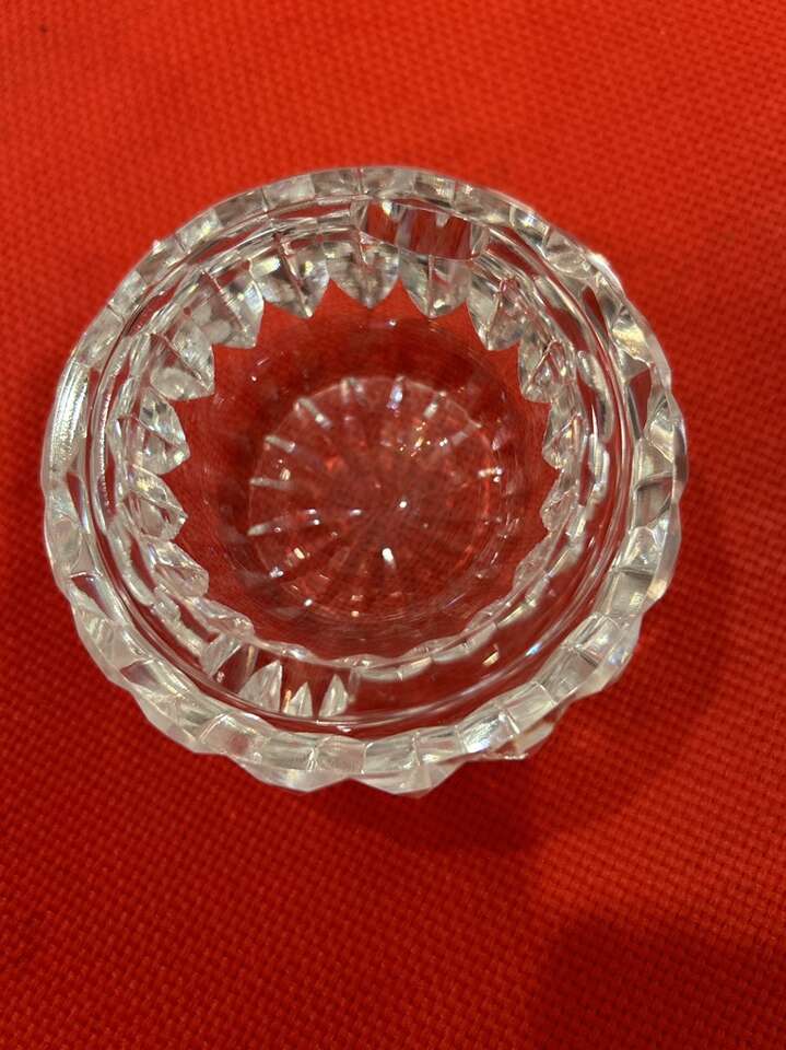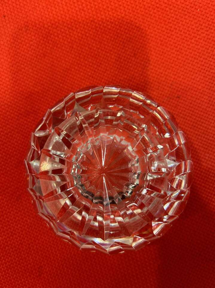 The round shape and clear color make it a versatile piece that can fit with any decor. Its handmade production technique and impressed backstamp show the attention to detail and craftsmanship put into this item. Whether you're a collector or just looking for a beautiful ashtray, this Waterford Crystal Colleen ashtray is sure to impress.