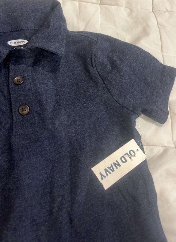 Brand new with tags Size 18-24 months Old navy Navy blue with brown buttons Short sleeve Color 60% cotton 40% polyester
