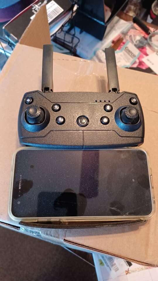 NEW PRICE. Two down, 3 remaining, NEVER out of the box drones. Original price was $50. Comes w/ 2 extra blades, 4 blade protectors, 1 battery, 1 micro screw driver, 1 USB charging cable, controller unit w/phone holder and instruction leaflet. For an additional cost : 1 battery -$8 ( one to the first two requests); 2 extra propellers - $3 (same as previous stipulation) and 2 drone cases - $5 ea. Battery life approx. 10 minutes. Instruction manual has info on downloading app for use of your phone. Has HD camera w/120 degree vision. A GREAT STARTER DRONE FOR THE NOVICE!. local only, CASH only, pickup only, NO shipping. Newer price.