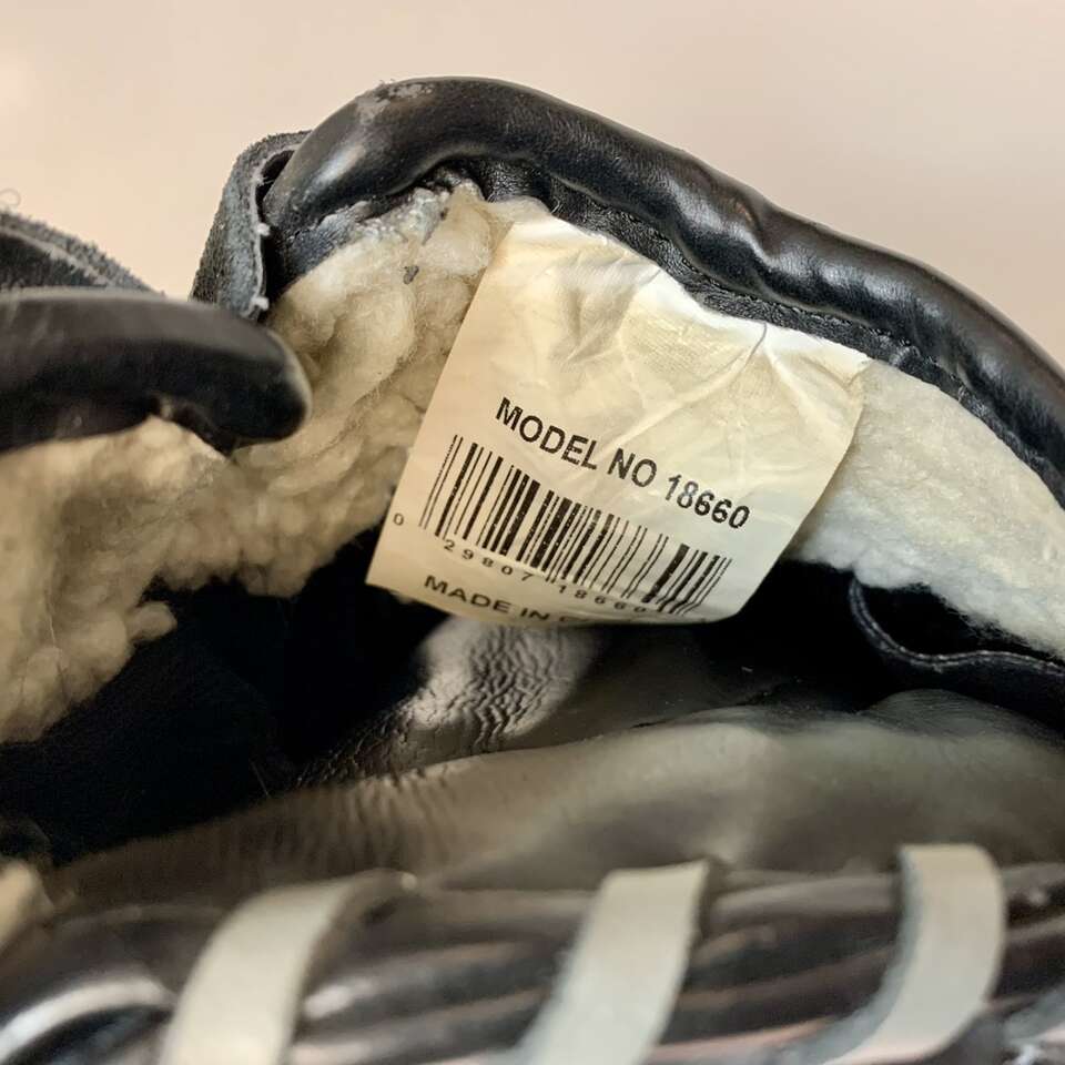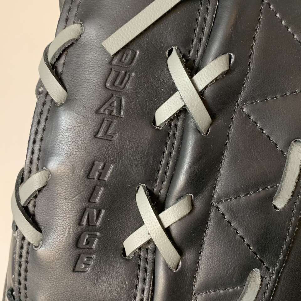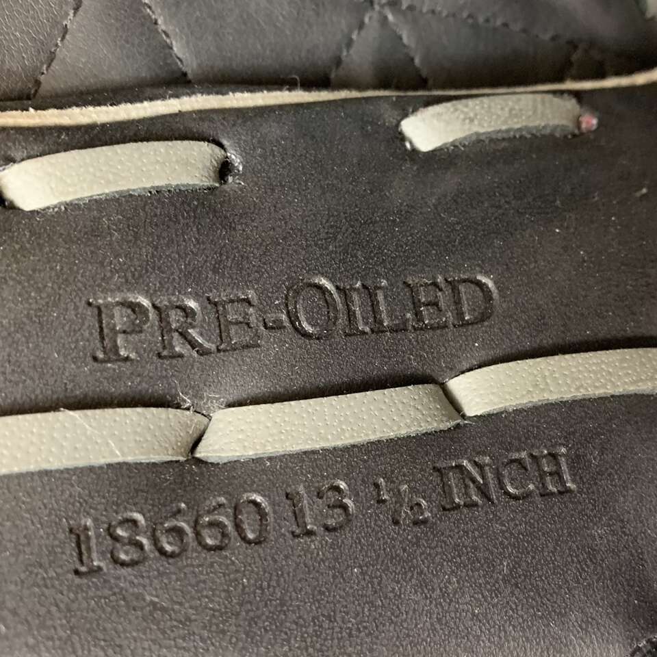 VenmoFor Right handed thrower, has duel hinge pocket, leather laced and pre-oiled, black and gray colored softball / baseball 13.5 inch long glove by Spalding. Has name on thumb side. Message me if you’re interested in purchasing