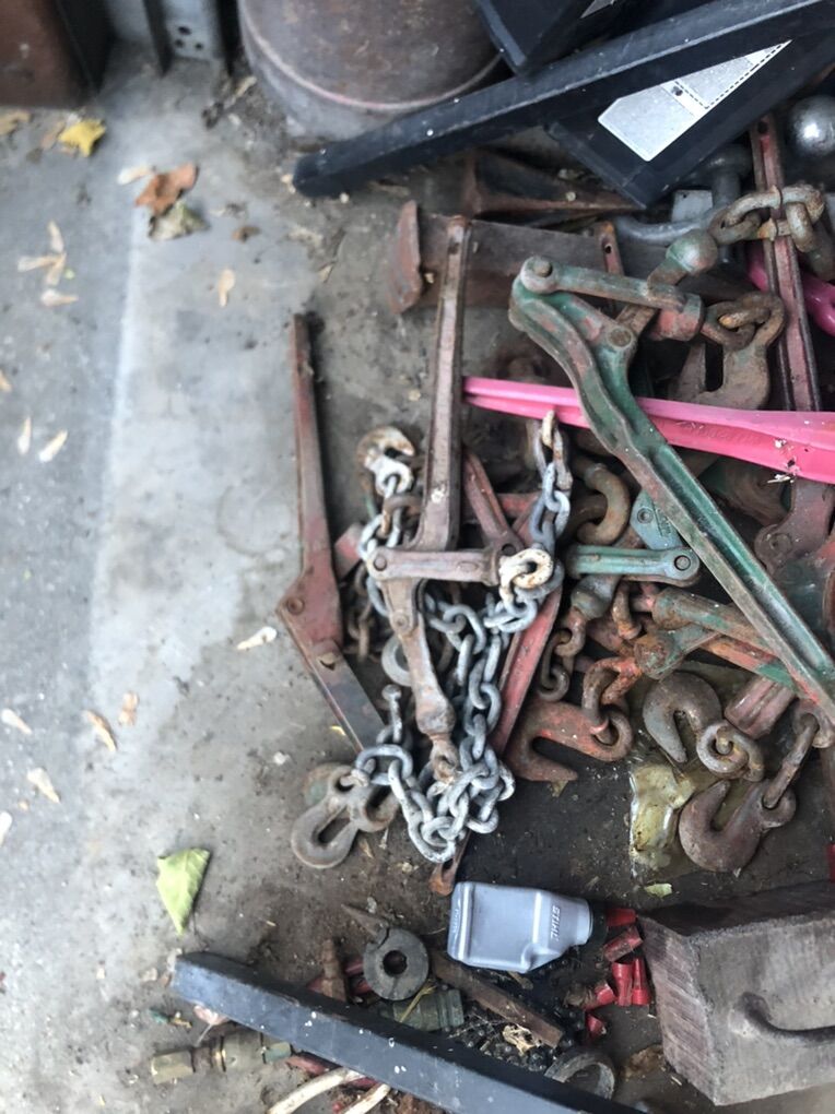 Jack Stands 20$ Floor creeper 15$ Big beefy wood Clamps for both 20$ Clamps 2$ each Kids scooter needs batteries no charger 15$ Weight bench 35$ Chain binders 8-12$ each