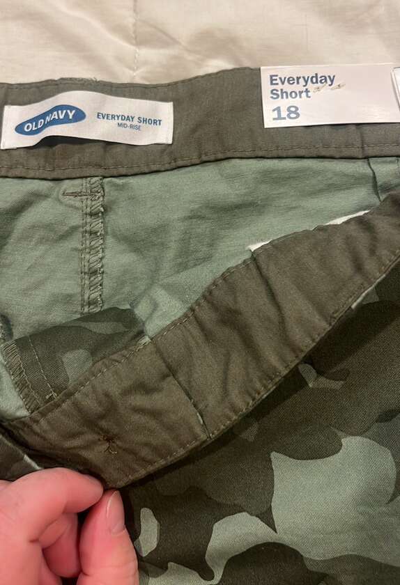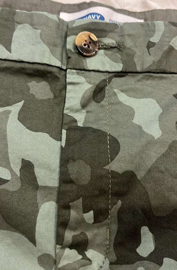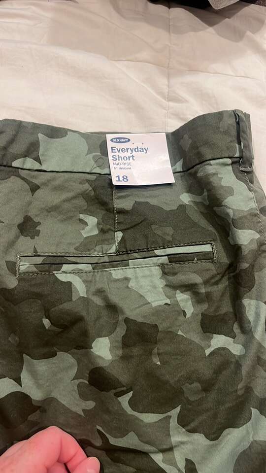 Brand new with tags 5” inseam Hip pockets Faux back pockets Belt loops Mid-rise Green Camoflauge Old Navy Size 18