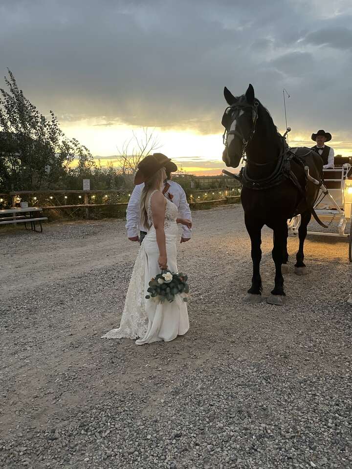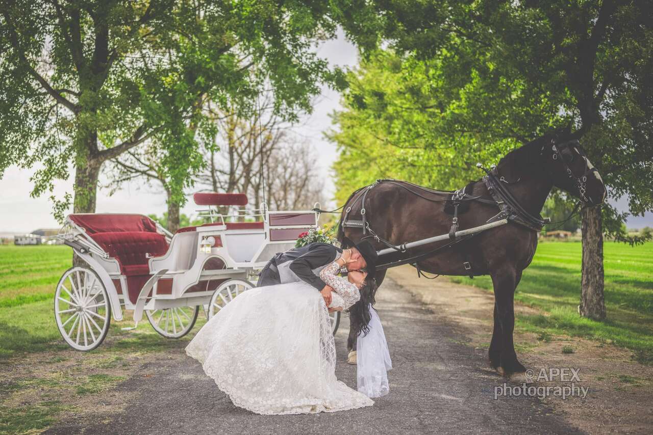 Located on 125 acres. Family owned and run. Working ranch, refurbished barn, beautiful bridge along with a large bridal room. Winter rates until March. All day rental 10:00am- 10:00pm. All tables, chairs, linens, runners, centerpieces, tv's, sound system included. Alcohol allowed no extra price. Monday-Wednesday $4,000 Thursday & Sunday $5,000 Friday & Saturday $6,500 Horse & Carriage $650.. Call to schedule a tour Tana 801-391-4699 @www.countryweddingsandevents.com